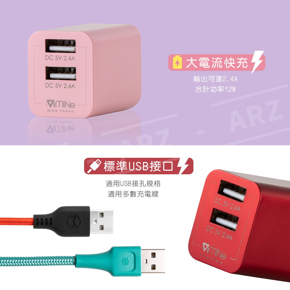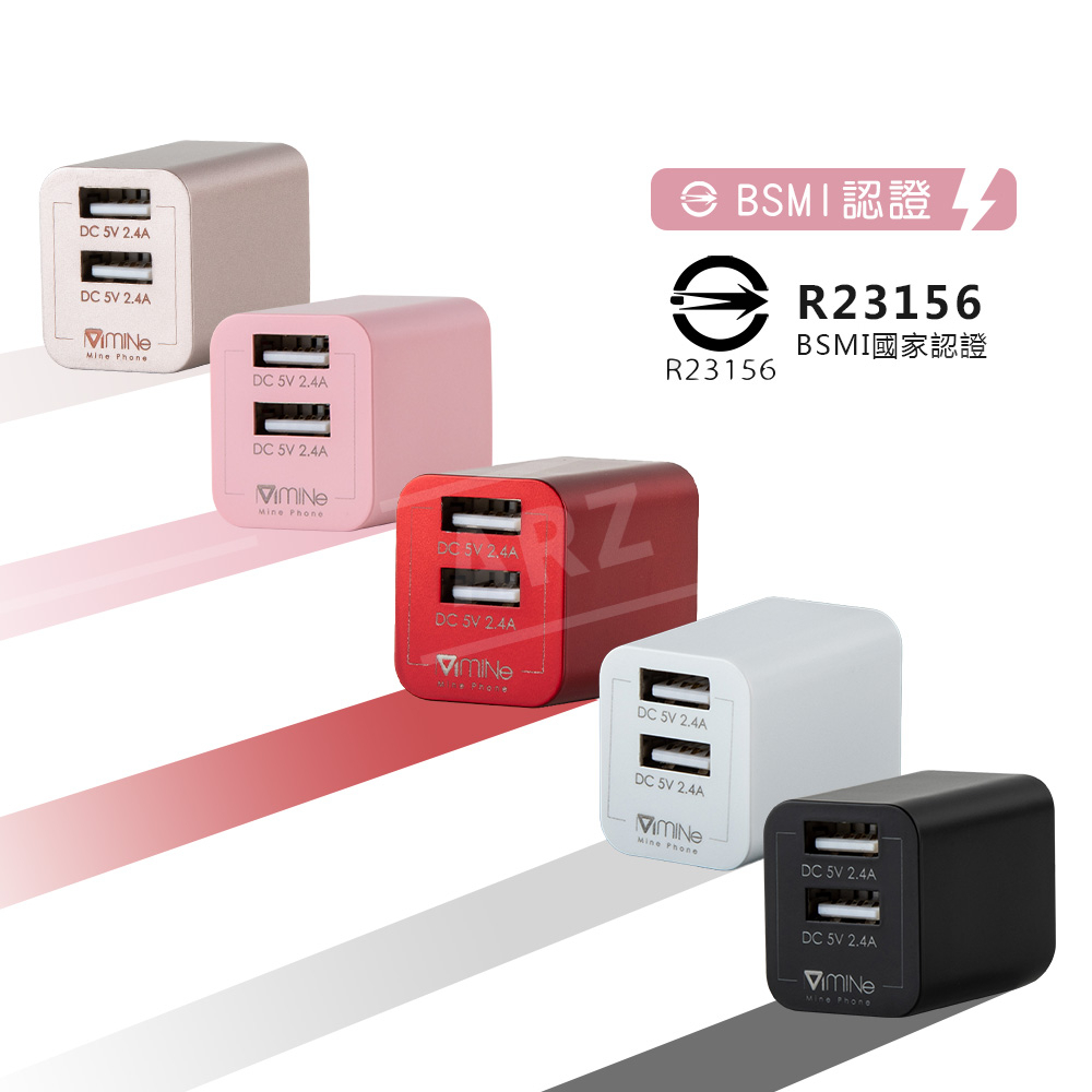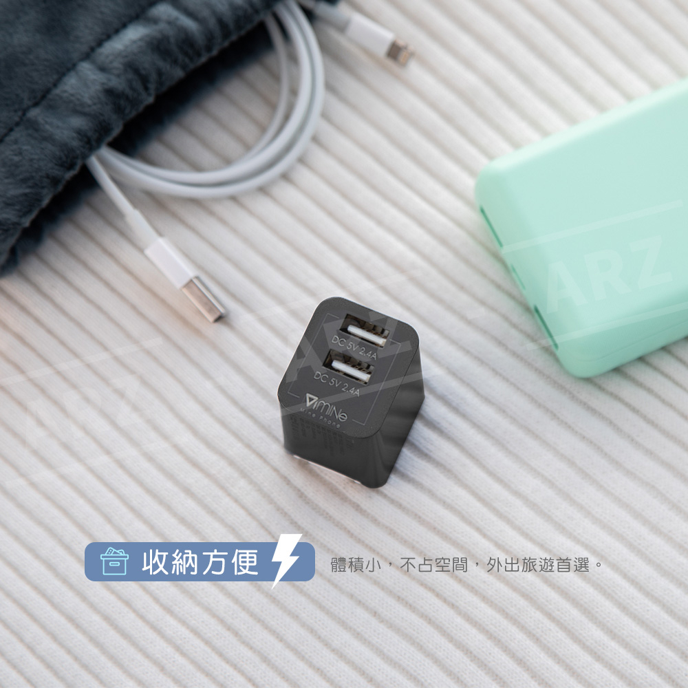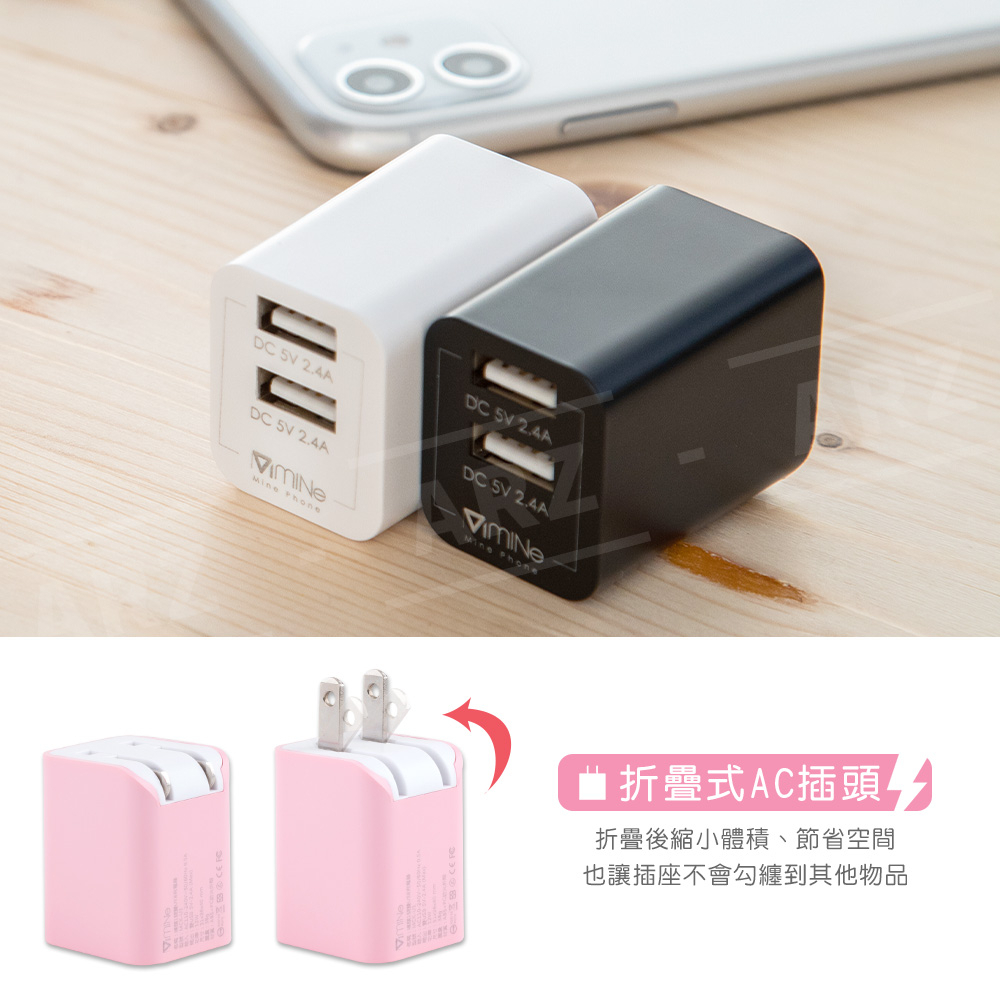 Mine峰 方塊豆腐雙USB充電器【ARZ 實拍現貨】【A096】2.4A快充 雙孔充電器 摺疊插頭 快充頭 旅充頭黑色|白色|紅色|粉紅|香檳金Cables, Chargers & ConvertersARZ行動商城