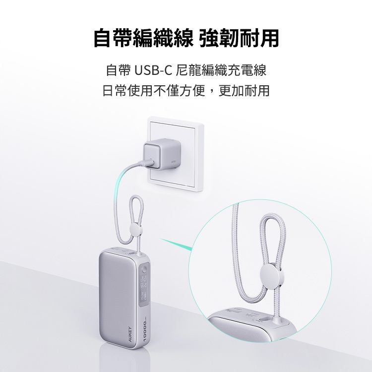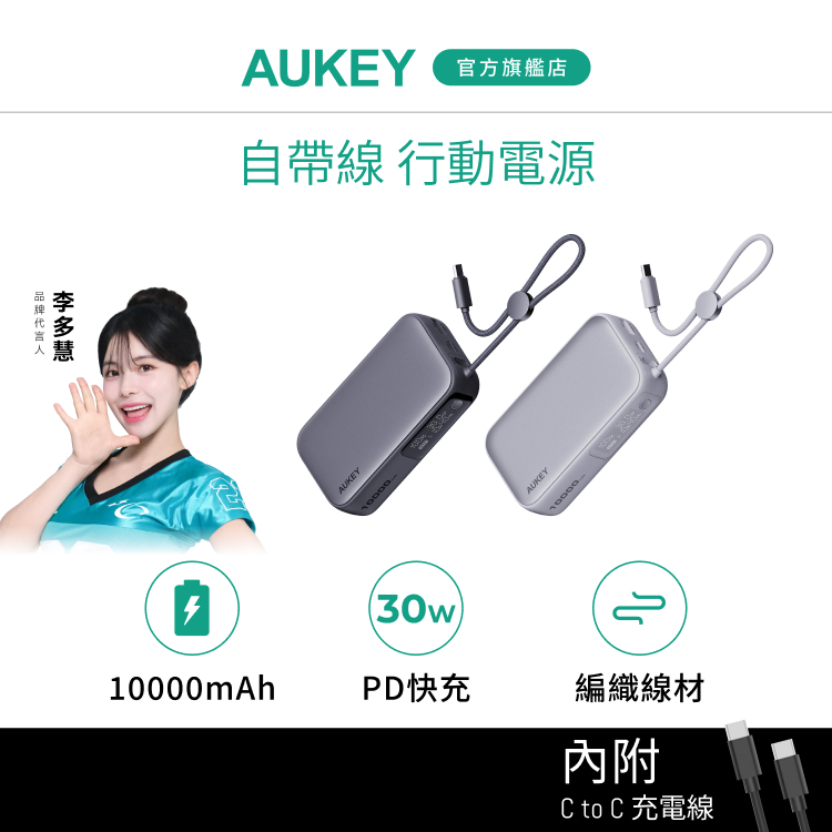 AUKEY Sling 10000mAh (PB-Y47)30W PD快充 行動電源灰+PA-B2T|白+PA-B2T|灰|白Powerbanks & BatteriesAUKEY 官方旗艦店