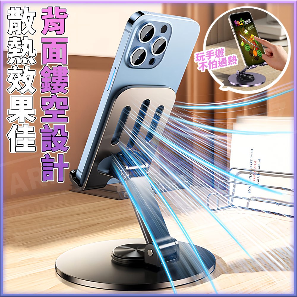 金屬手機架 旋轉 手機支架【ARZ 實拍現貨】【F127】摺疊 手機架 桌上手機架 平板架 平板支架 直播架 懶人手機架灰色|紫色Phone GripsARZ行動商城