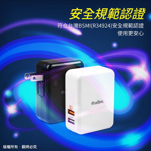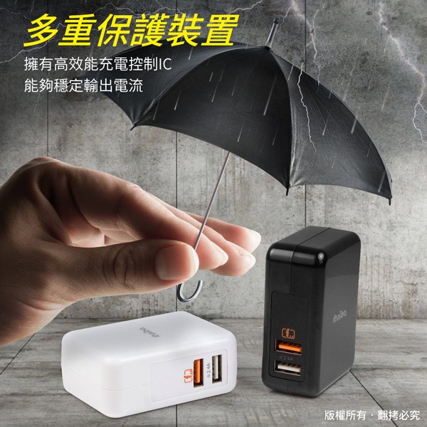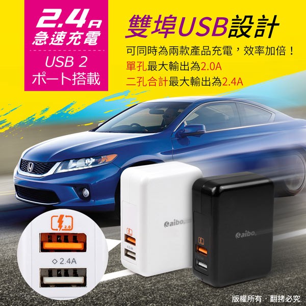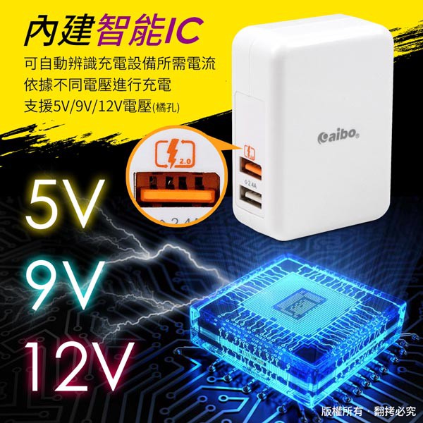 aibo QC2.0 智能5V/9V/12V 雙USB快速充電器【現貨】手機充電頭 USB快充 手機快充頭黑色|白色Cables, Chargers & Convertersaibo 3C生活館