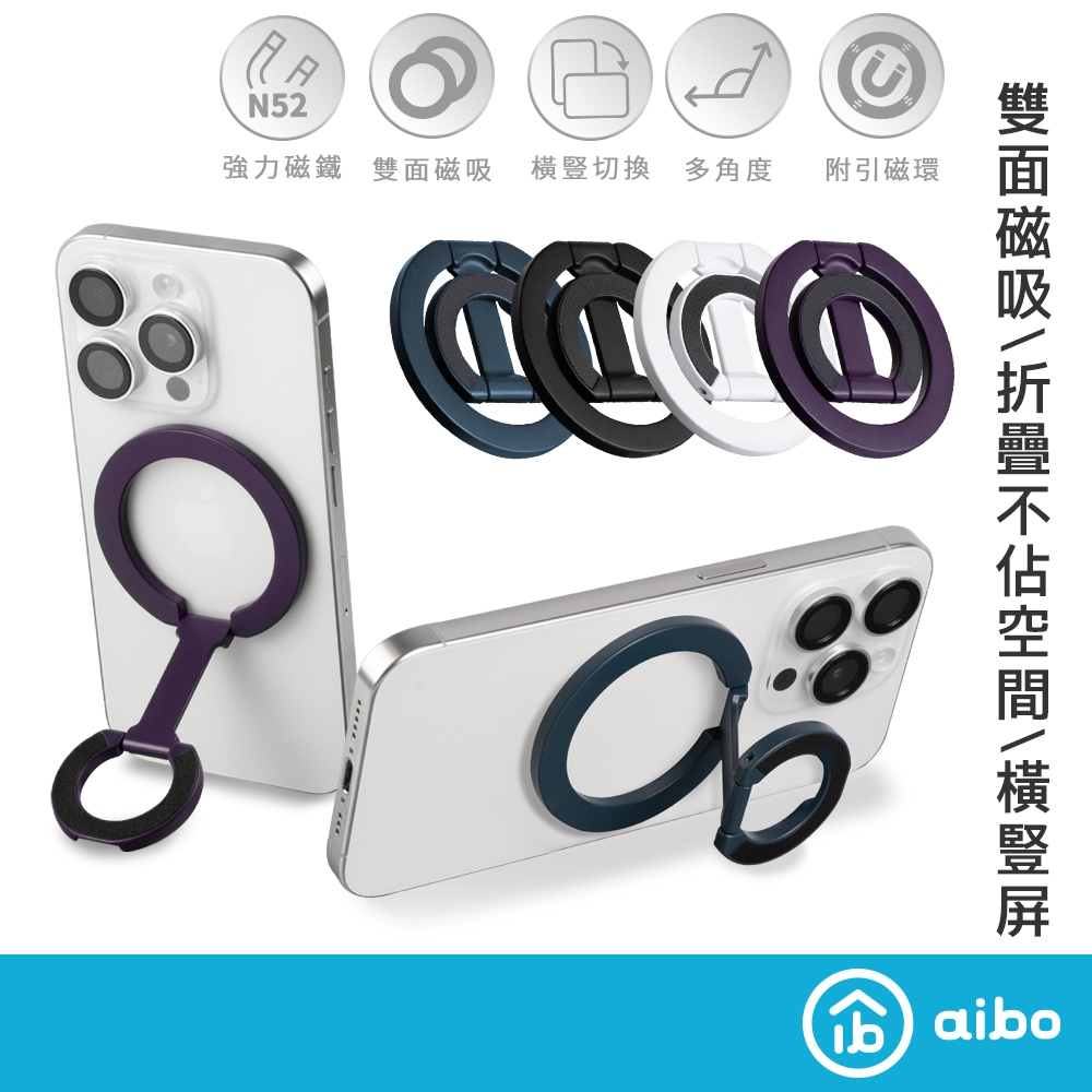aibo 雙面強力磁吸手機支架 MagSafe【現貨】指環扣 手機支架 穩固不掉 橫放直立 鋁合金 指環支架 隱形支架藏青藍|曜石黑|暗紫色|氣質白Phone Gripsaibo 3C生活館