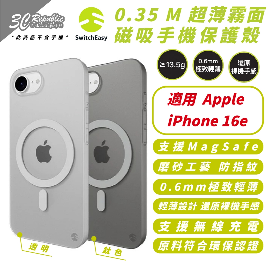 SwitchEasy 魚骨牌 超薄 霧面 磁吸 保護殼 手機殼 防摔殼 支援 MagSafe 適 iphone 16e透明iPhone 16e|鈦色iPhone 16eCases, Covers, & Skins3c共和國