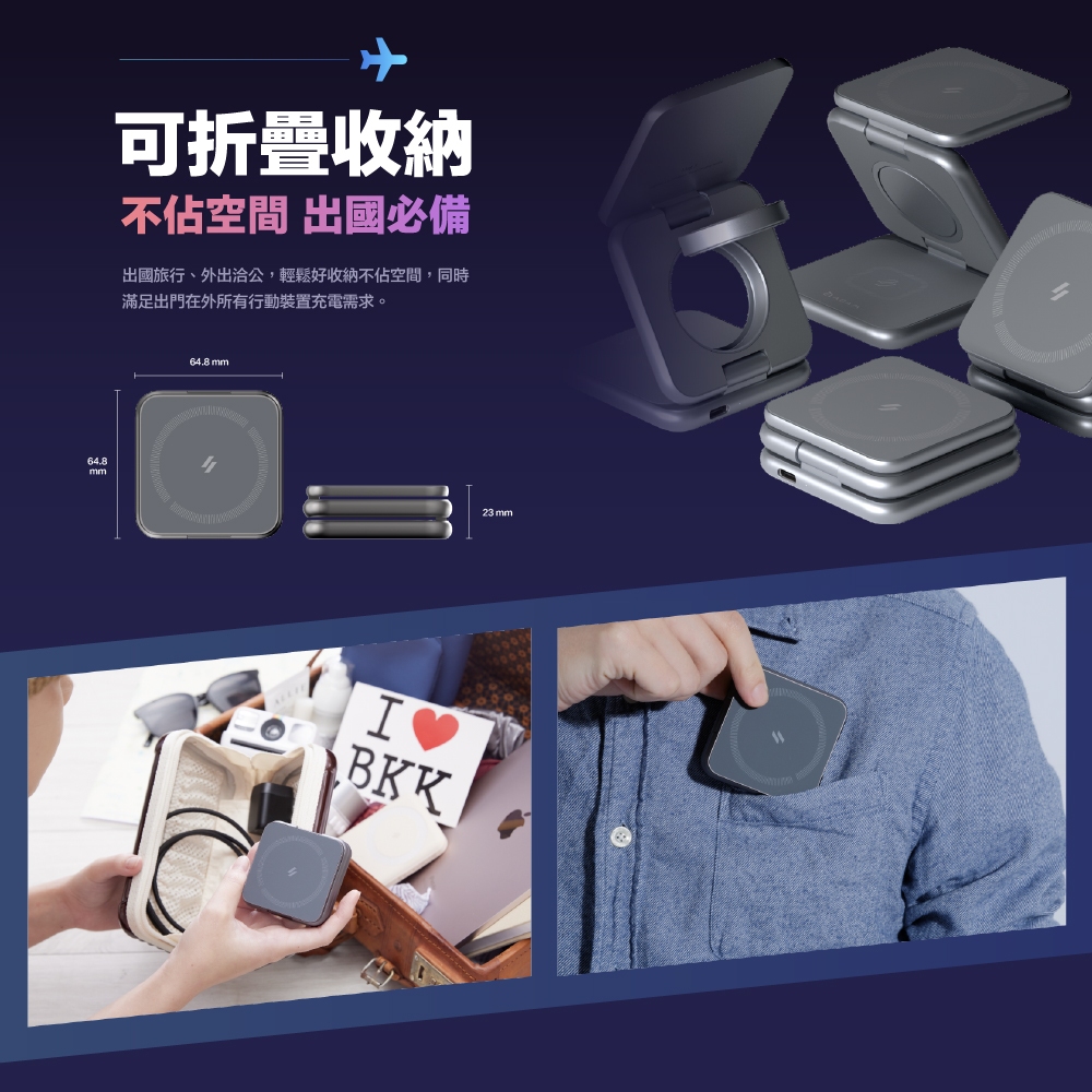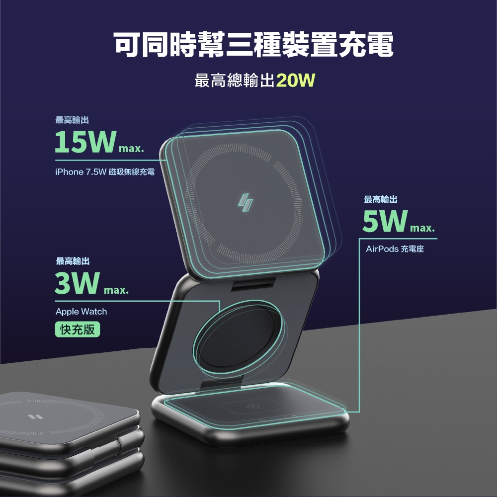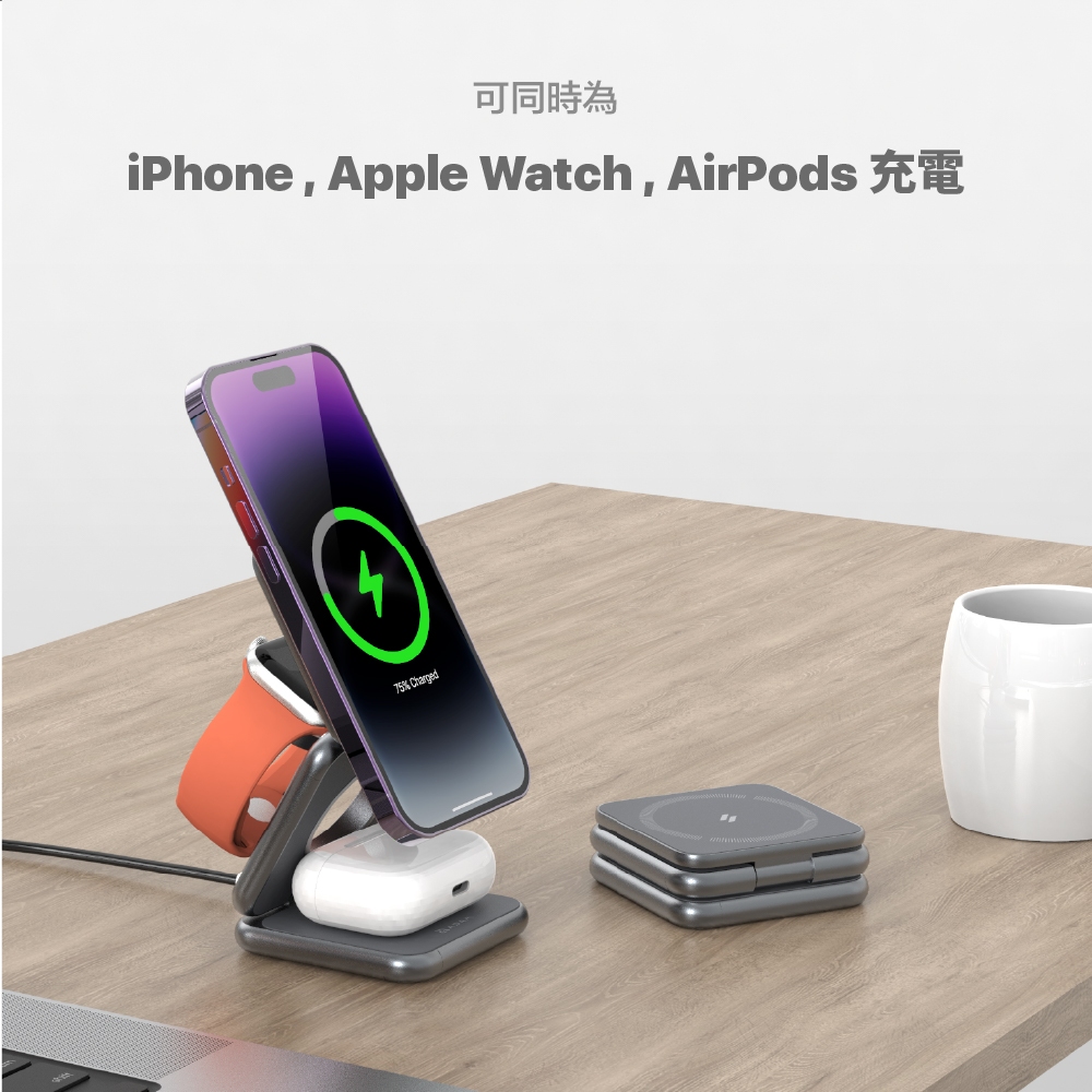 【ADAM 亞果元素】Mag 3 折疊式三合一旅行磁吸無線充電座 品牌旗艦店Mag 3 灰Cables, Chargers & ConvertersADAM STORE 亞果元素旗艦店