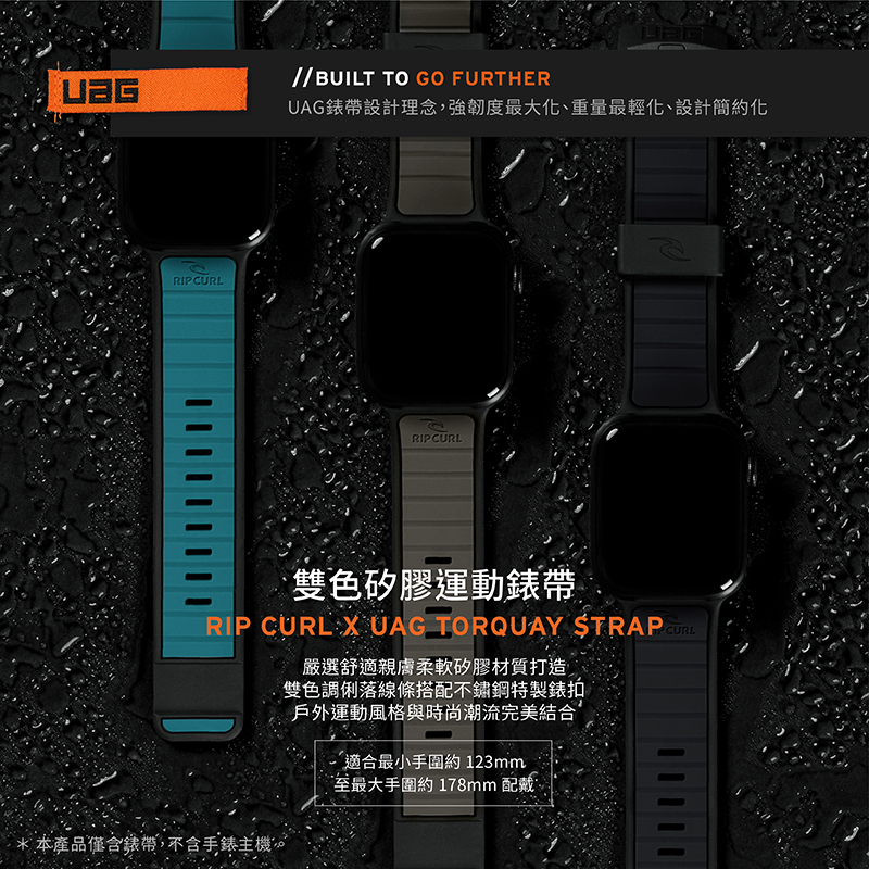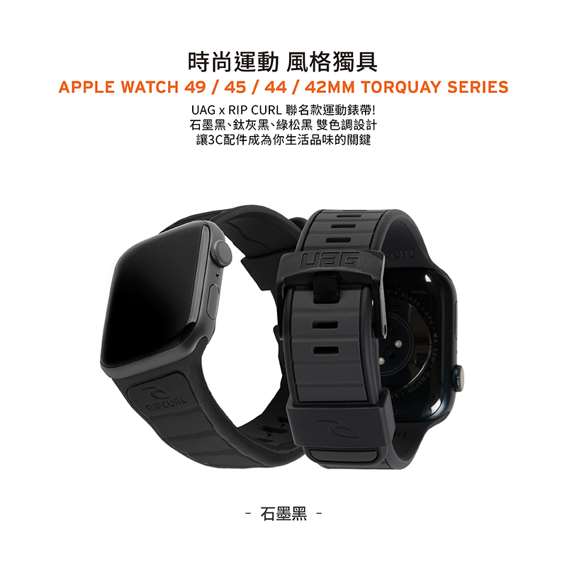 【UAG】X RIP CURL Apple Watch 44/45/46/49mm 雙色矽膠運動錶帶石墨黑|鈦灰黑|綠松黑Wearable Accessories3C SHOP 數位生活