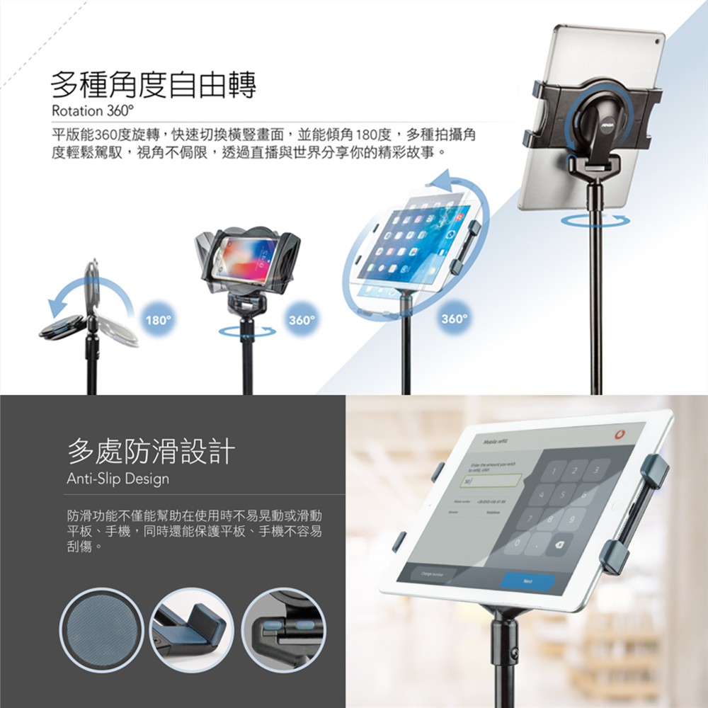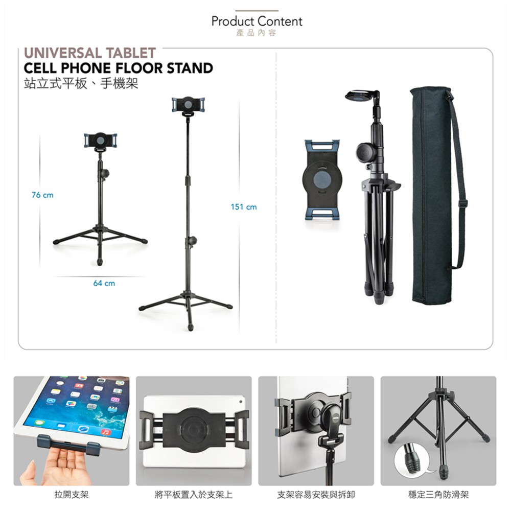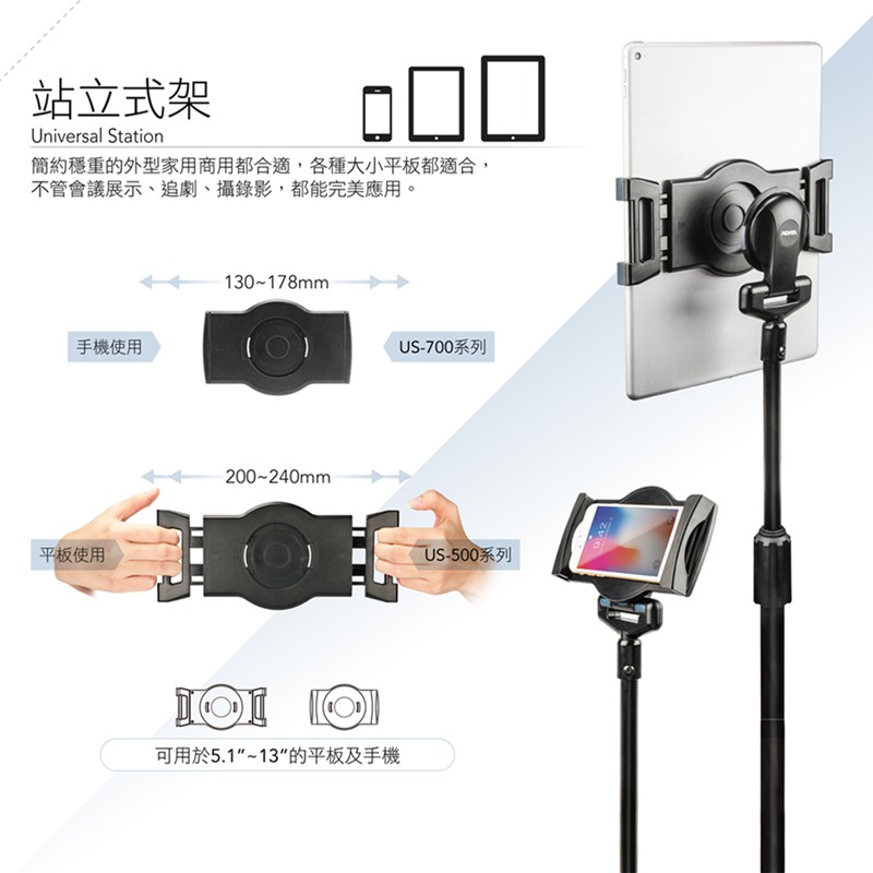 AIDATA 愛得他 5.1~13吋萬用手機/平板電腦落地三腳架 US-5009B 附贈7001-U夾具【黑色】落地三腳架/附7001-U夾具Phone GripsAIDATA 愛得他