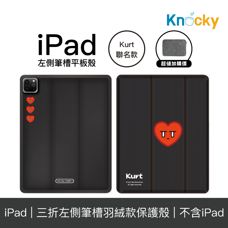 Knocky原創聯名 iPad Air4/5/6/7/Pro11『愛心款』Kurt 羽絨款 平板保護殼 三折式/內側筆槽