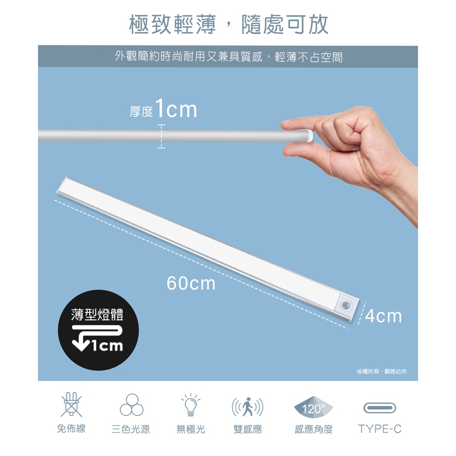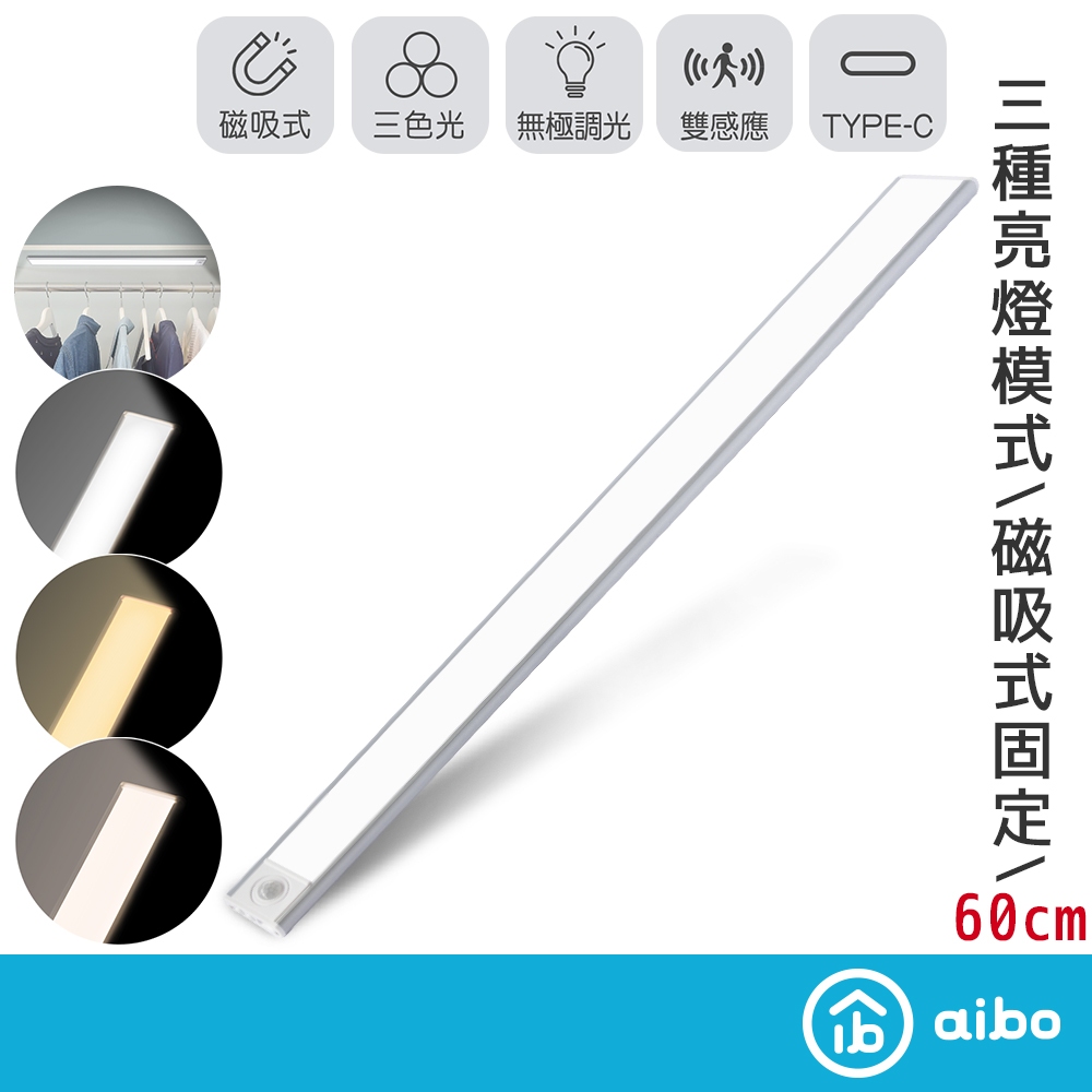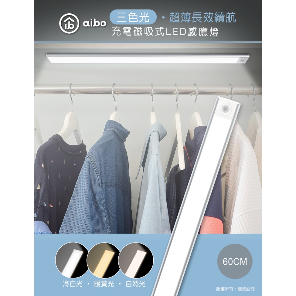 aibo 極薄長效續航 60cm磁吸 LED感應燈【現貨】三色光 玄關燈 櫥櫃燈 LED燈 照明燈 感應燈管 1公分厚1入USB & Mobile Lightsaibo 3C生活館