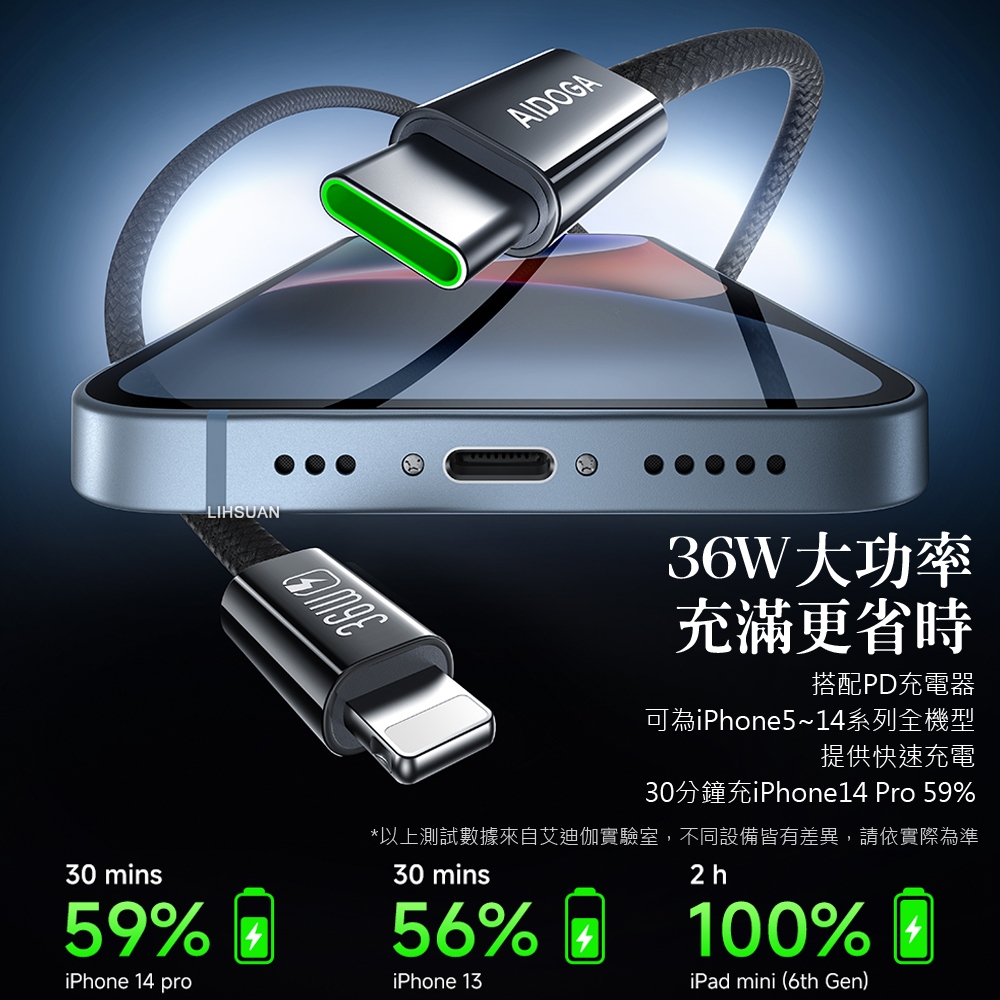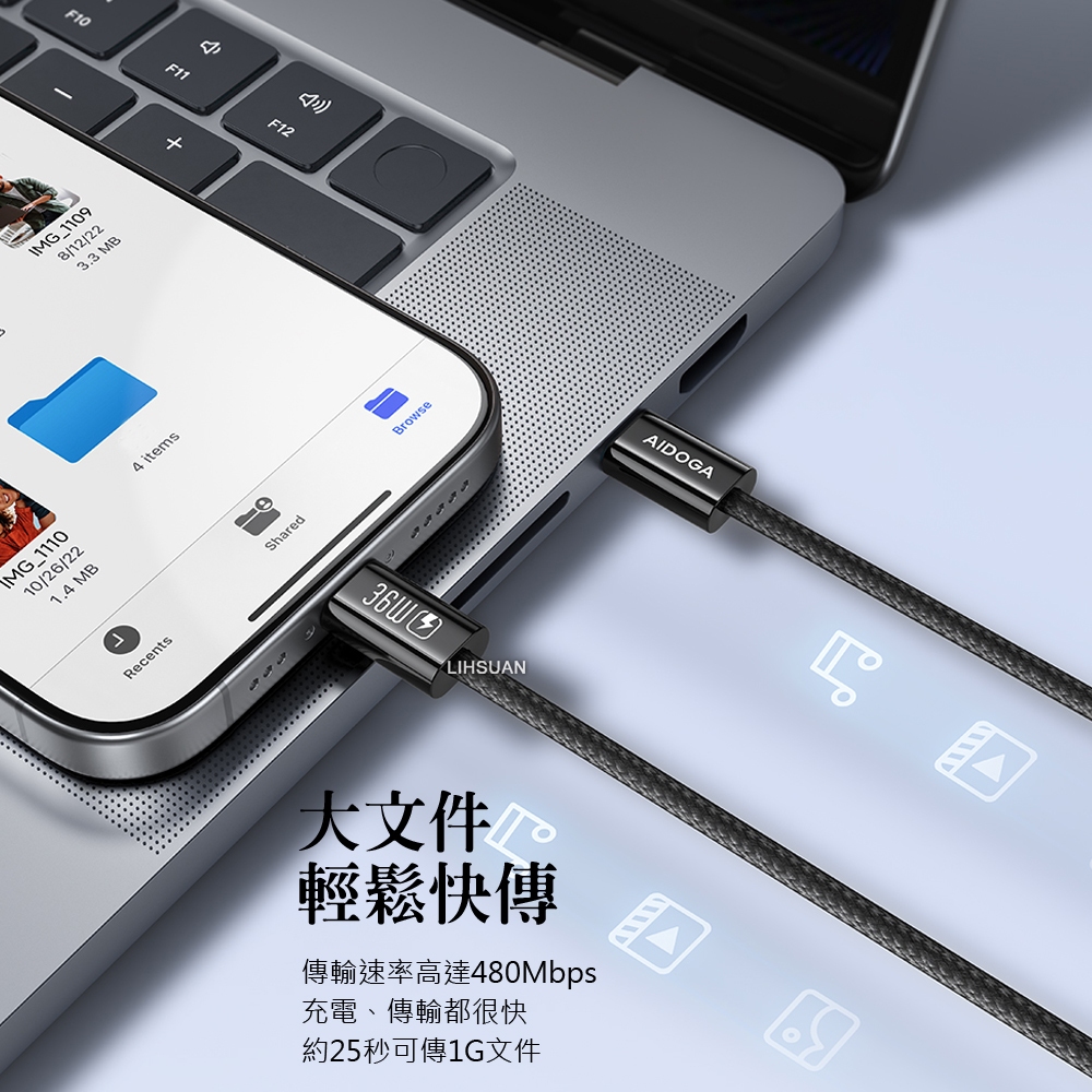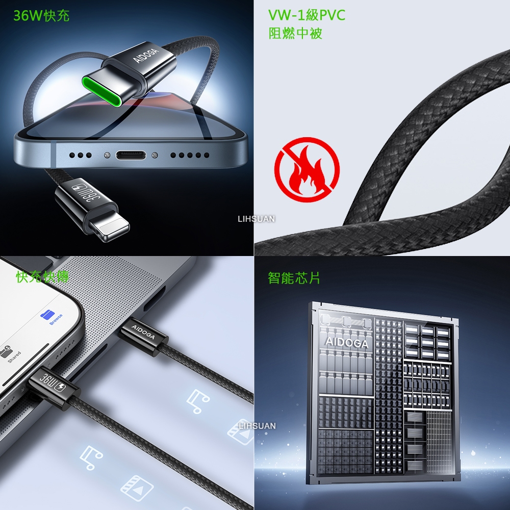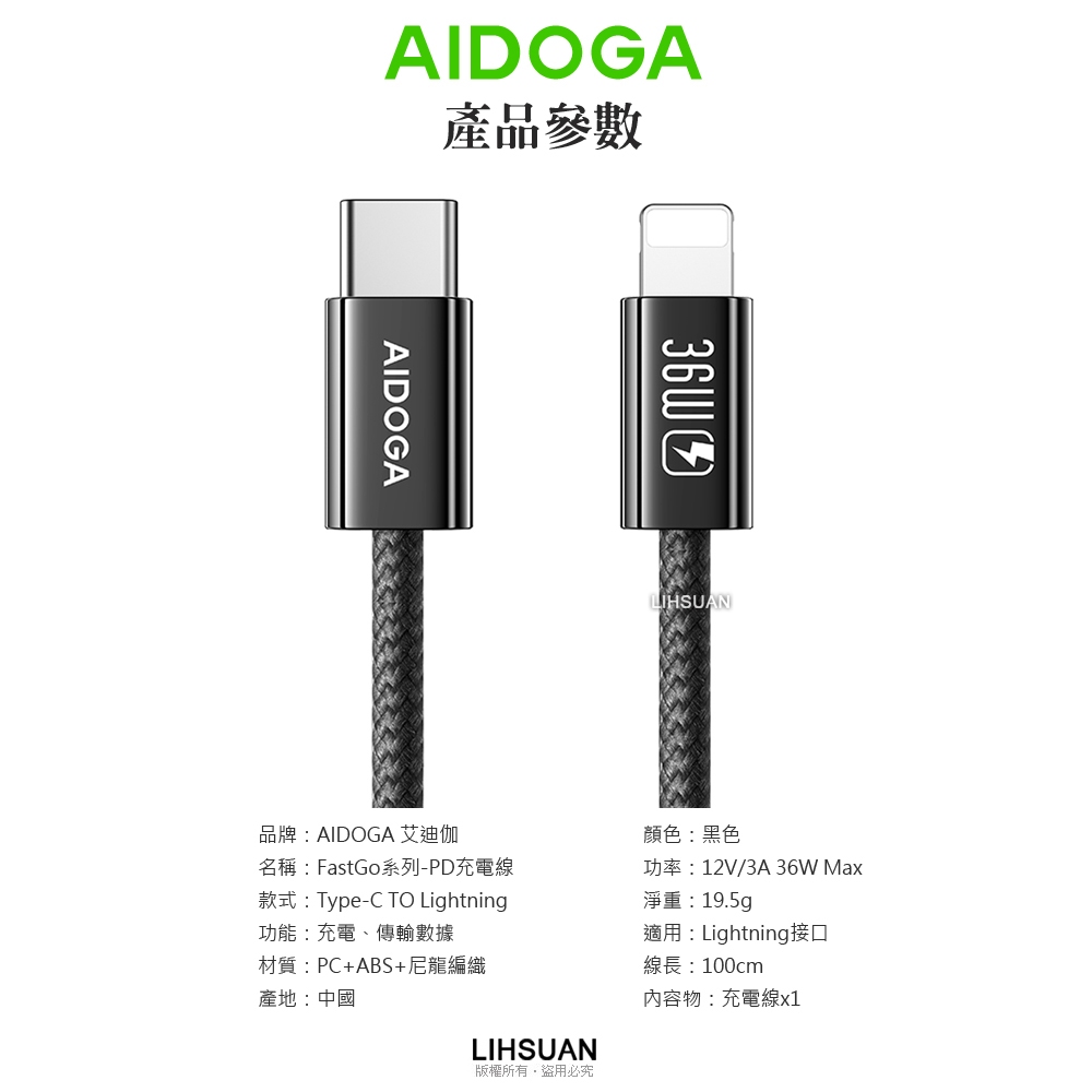 AIDOGA 艾迪伽 PD/Lightning/TypeC/iPhone充電傳輸線 36W快充 FastGo系列 1M黑色Cables, Chargers & ConvertersAIDOGA 艾迪伽官方旗艦店