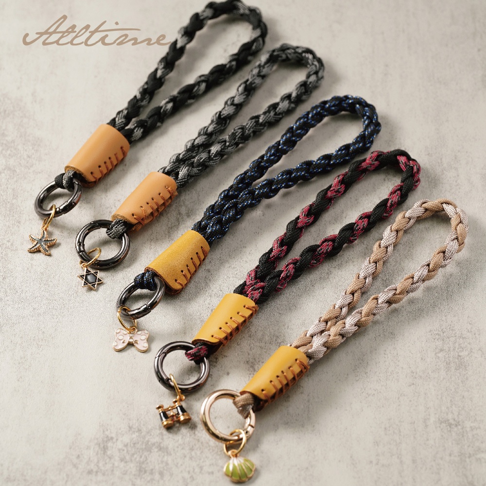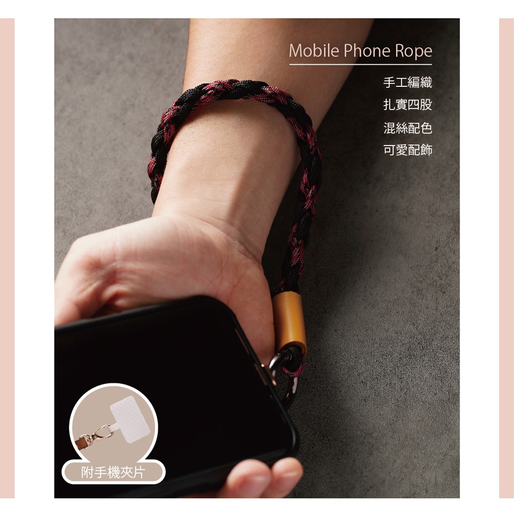 【AllTime】四股編織皮革腕帶手機掛繩 (附手機夾片) 手機繩 手機吊繩 錢包掛繩虛實黑|雜訊灰|火痕黑|黛藍黑|刺槐棕Phone Straps & KeychainsAllTime 完全計時|智慧穿戴