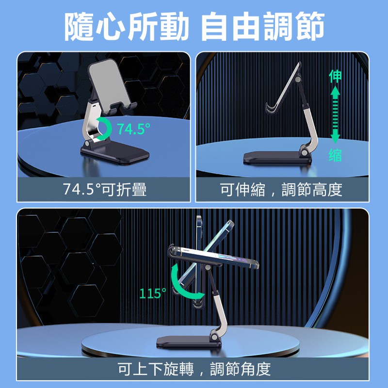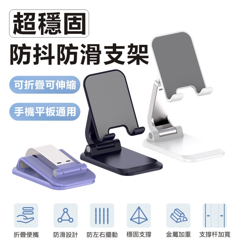 雙軸桌面手機支架 支架 適用三星/華碩/蘋果等手機/平板 懶人支架 平板支架 手機支架 辦公支架 折疊支架 伸縮金屬支架炫酷黑|珍珠白|淺紫色Phone GripsADHIL旗艦店