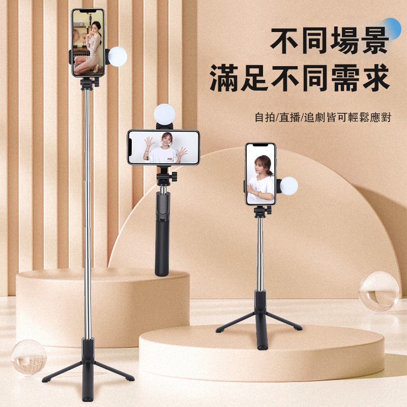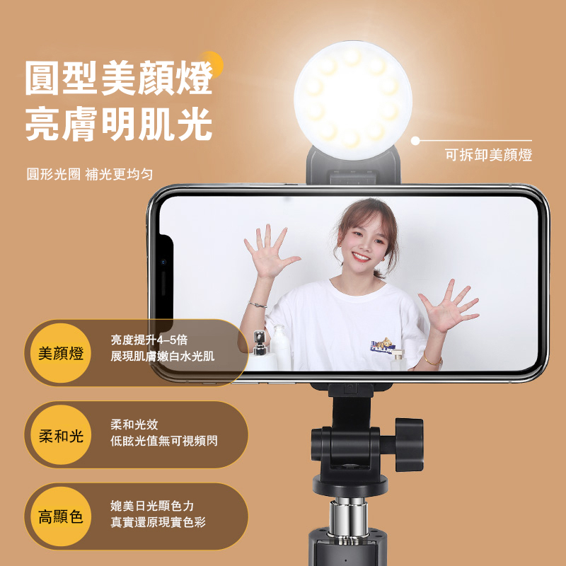 無線補光自拍棒 自拍棒 三腳架 適用直播/攝影/拍照 藍芽自拍器 美顏自拍神器 手機腳架 藍牙自拍棒 補光燈 迷你自拍桿粉色|黑色|白色Selfie AccessoriesADHIL旗艦店