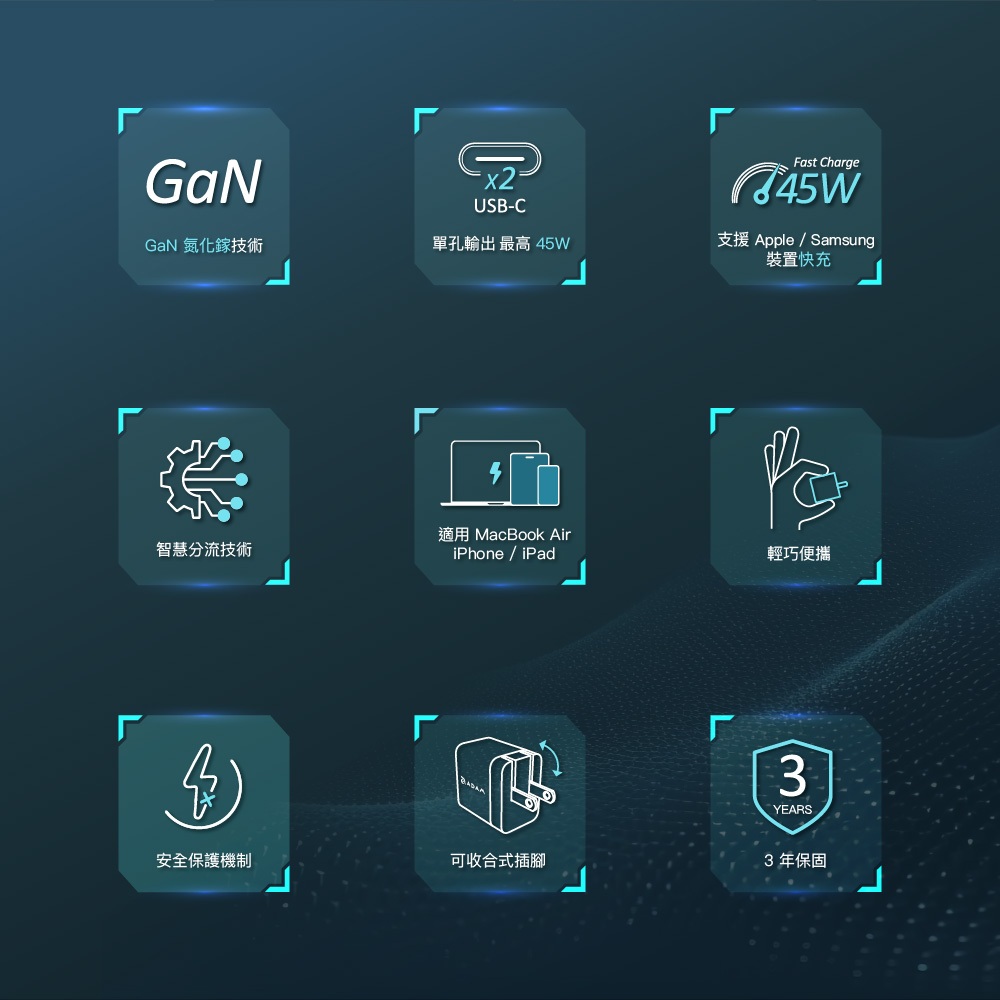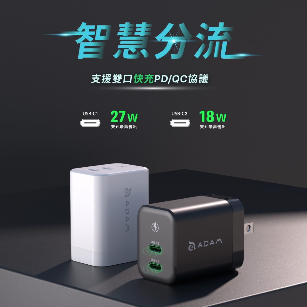 【ADAM 亞果元素】OMNIA X45C GaN 45W 雙孔快速電源供應器(三年保固) 品牌旗艦店黑色|白色Cables, Chargers & ConvertersADAM STORE 亞果元素旗艦店