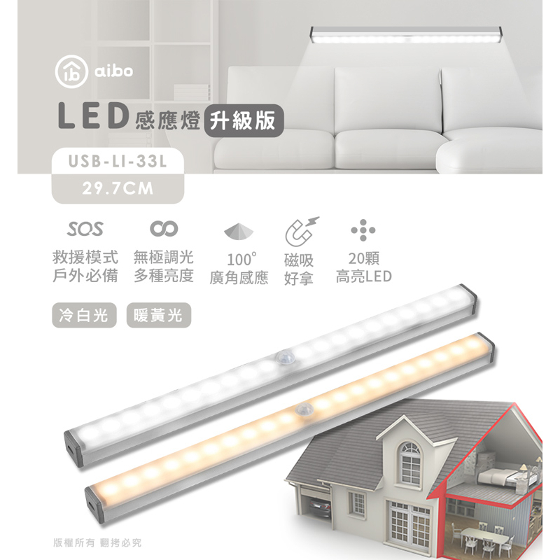 aibo 29.7cm 升級版 USB充電磁吸 LED感應燈管【現貨】手電筒 床頭燈 照明燈 感應燈 恆亮 LED燈冷白光|暖黃光USB & Mobile Lightsaibo 3C生活館