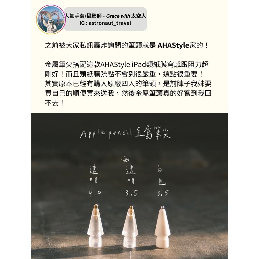 AHAStyle Apple Pencil 金屬替換筆尖 鉛筆/圓珠筆/鋼筆手感【官方旗艦店】白色,3.0mm/3.5mm/4.0mm各一入|黑色,3.0mm/3.5mm/4.0mm各一入|透明色,3.0mm/3.5mm/4.0mm各一入|黑色,3.5mm 圓珠筆手感(單個入)|透明色,3.5mm 圓珠筆手感(兩個入)|白色,3.5mm 圓珠筆手感(兩個入)|白色,3.5mm 圓珠筆手感(單個入)|白色,4.0mm 鋼筆手感(單個入)|黑色,3.5mm 圓珠筆手感(兩個入)|黑色,4.0mm 鋼筆手感(單個入)|透明色,3.5mm 圓珠筆手感(單個入)|透明色,4.0mm 鋼筆手感(單個入)|白色,3.0mm 鉛筆手感(單個入)|白色,3.0mm 鉛筆手感(兩個入)|黑色,3.0mm 鉛筆手感(單個入)|黑色,3.0mm 鉛筆手感(兩個入)|透明色,3.0mm 鉛筆手感(單個入)|透明色,3.0mm 鉛筆手感(兩個入)|白色,4.0mm 鋼筆手感(兩個入)|黑色,4.0mm 鋼筆手感(兩個入)|透明色,4.0mm 鋼筆手感(兩個入)OthersAHAStyle 官方旗艦店