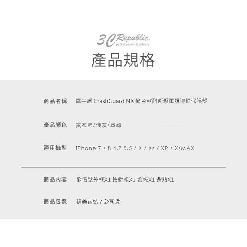 犀牛盾 iPhone X Xs MAX XR 7 8 plus se3 CrashGuard NX 保護殼 邊框 手機殼iPhone7/8 4.7淺灰邊框|iPhone7/8 4.7軍綠邊框|iPhone7/8 4.7薰衣紫邊框|iPhone X/Xs淺灰邊框|iPhone X/Xs軍綠邊框|iPhone X/Xs薰衣紫邊框|iPhone XR淺灰邊框|iPhone XR軍綠邊框|iPhone XR薰衣紫邊框|iPhone XsMAX淺灰邊框|iPhone XsMAX軍綠邊框|iPhone XsMAX薰衣紫邊框|ise2/se3(2022)淺灰邊框|ise2/se3(2022)軍綠邊框|ise2/se3(2022)薰衣紫邊框|Phone7/8 plus 黑色邊框Cases, Covers, & Skins3c共和國