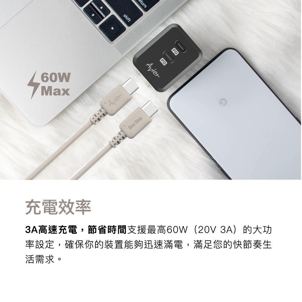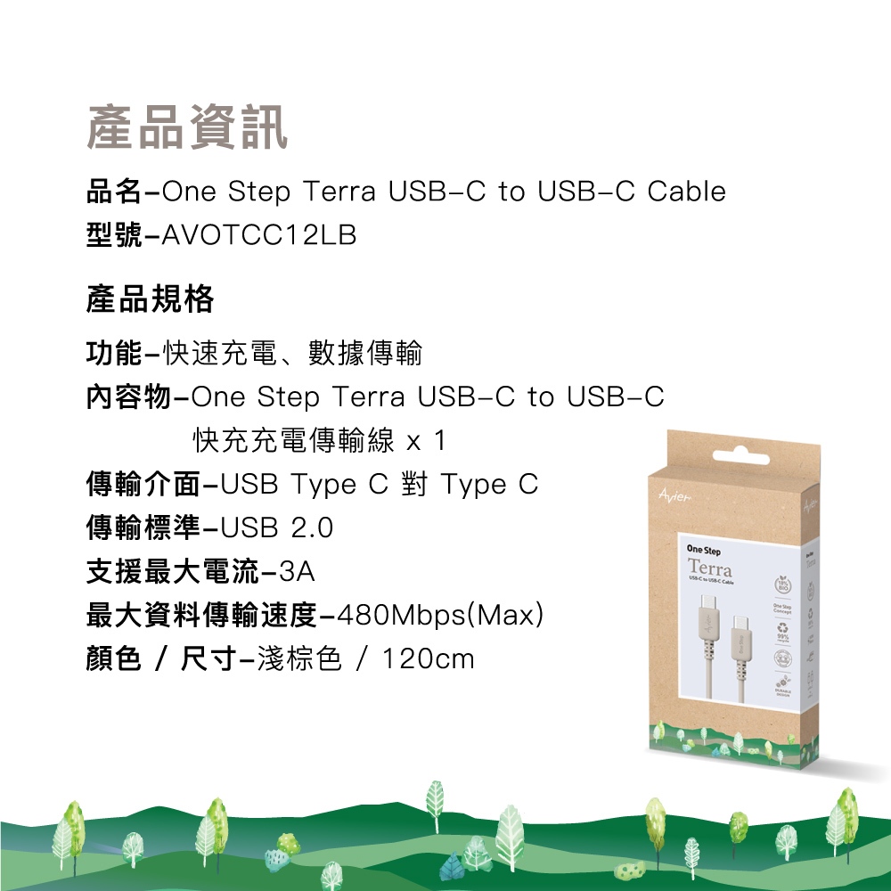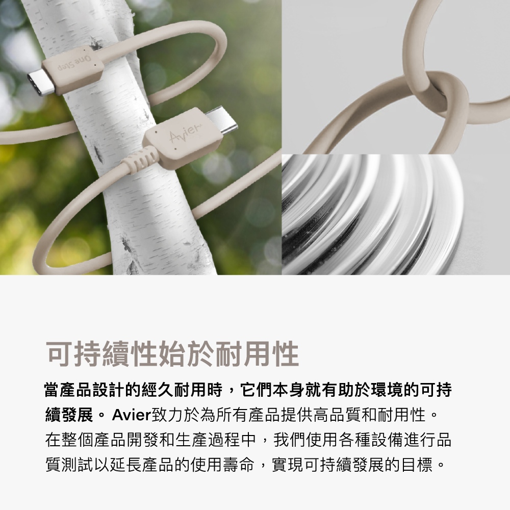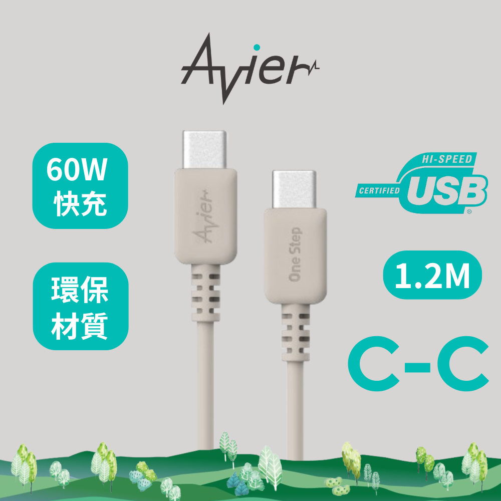 【Avier】One Step Terra 60W Type-C to C 環保 快充 充電傳輸線 – 1.2M 兩色大地棕|雲霧白Cables, Chargers & ConvertersAvier 官方旗艦店
