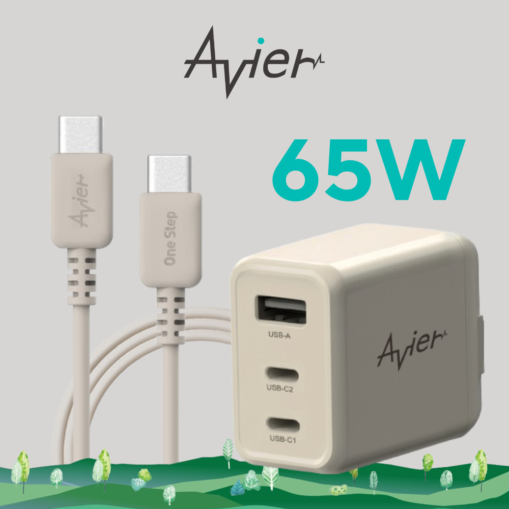 【Avier】One Step Terra 65W 三孔 GaN氮化鎵 PD快速充電組 Type-C 1.2M – 兩色大地棕,棕色|大地棕,白色|雲霧白,棕色|雲霧白,白色Cables, Chargers & ConvertersAvier 官方旗艦店