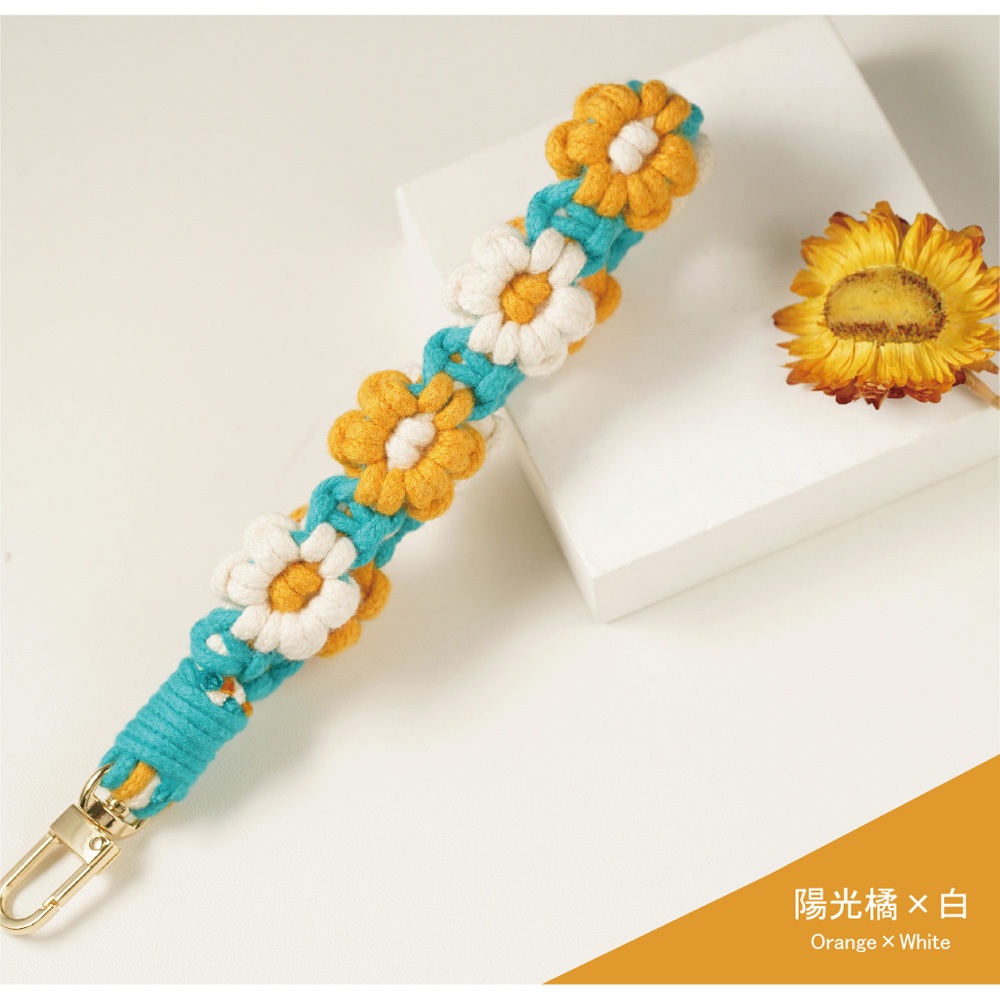 【AllTime】俏麗花花腕帶手機掛繩(藍/橘) 附夾片 手機吊繩 手機腕繩 手機繩藍x白|陽光橘x白Phone Straps & KeychainsAllTime 完全計時|智慧穿戴