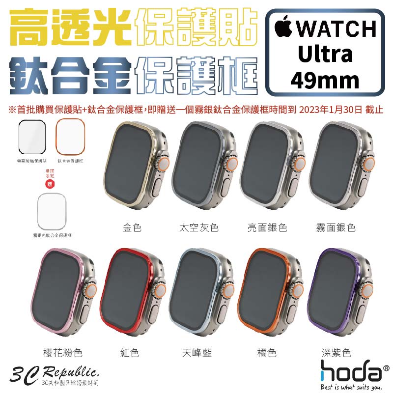 HODA 高透光 保護貼 玻璃貼 + 鈦合金 保護框 外框 適用 Apple Watch Ultra 2 49 49mmultra 1&2 49mm-金色 外框,「高透光」玻璃貼 + 鈦合金 保護框|ultra1&2 49mm-亮面銀色外框,「高透光」玻璃貼 + 鈦合金 保護框|ultra 1&2 49mm-太空灰外框,「高透光」玻璃貼 + 鈦合金 保護框|ultra1&2 49mm-霧面銀色外框,「高透光」玻璃貼 + 鈦合金 保護框|ultra 1&2 49mm-深紫色外框,「高透光」玻璃貼 + 鈦合金 保護框|ultra 1&2 49mm -紅色外框,「高透光」玻璃貼 + 鈦合金 保護框|ultra1&2 49mm-櫻花粉色外框,「高透光」玻璃貼 + 鈦合金 保護框|ultra 1&2 49mm-橘色,「高透光」玻璃貼 + 鈦合金 保護框Wearable Accessories3c共和國
