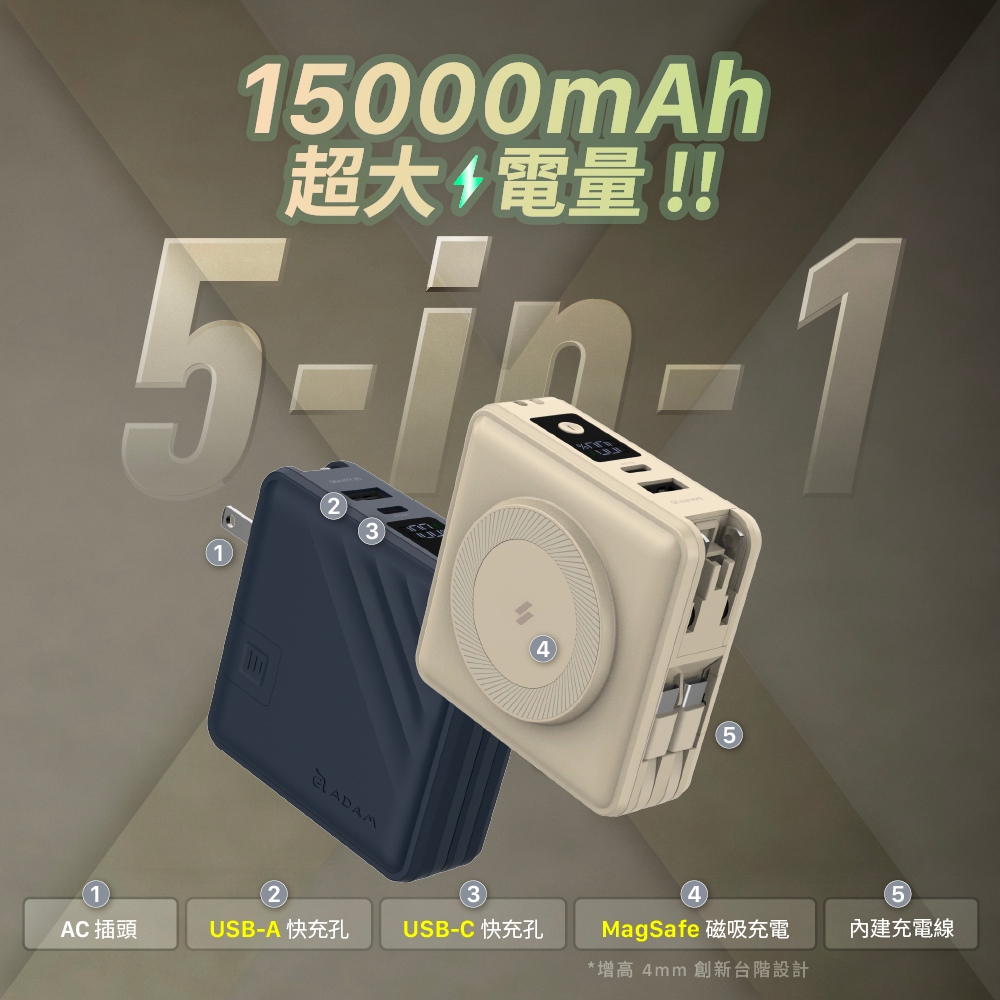 【ADAM 亞果元素】GRAVITY X5 15000mAh 五合一萬用行動電源(可上飛機/Wh已標示) 品牌旗艦店Type-C+Type-C 充電線,15000mAh|黑色|Type-C+Type-C 充電線,15000mAh|藍灰色|Type-C+Type-C 充電線,15000mAh|墨綠色|Type-C+Type-C 充電線,15000mAh|蝶豆藍|Type-C+Type-C 充電線,15000mAh|沙漠色|Type-C+Lightning 充電線,15000mAh|黑色|Type-C+Lightning 充電線,15000mAh|藍灰色|Type-C+Lightning 充電線,15000mAh|墨綠色|Type-C+Lightning 充電線,15000mAh|蝶豆藍|Type-C+Lightning 充電線,15000mAh|沙漠色Powerbanks & BatteriesADAM STORE 亞果元素旗艦店