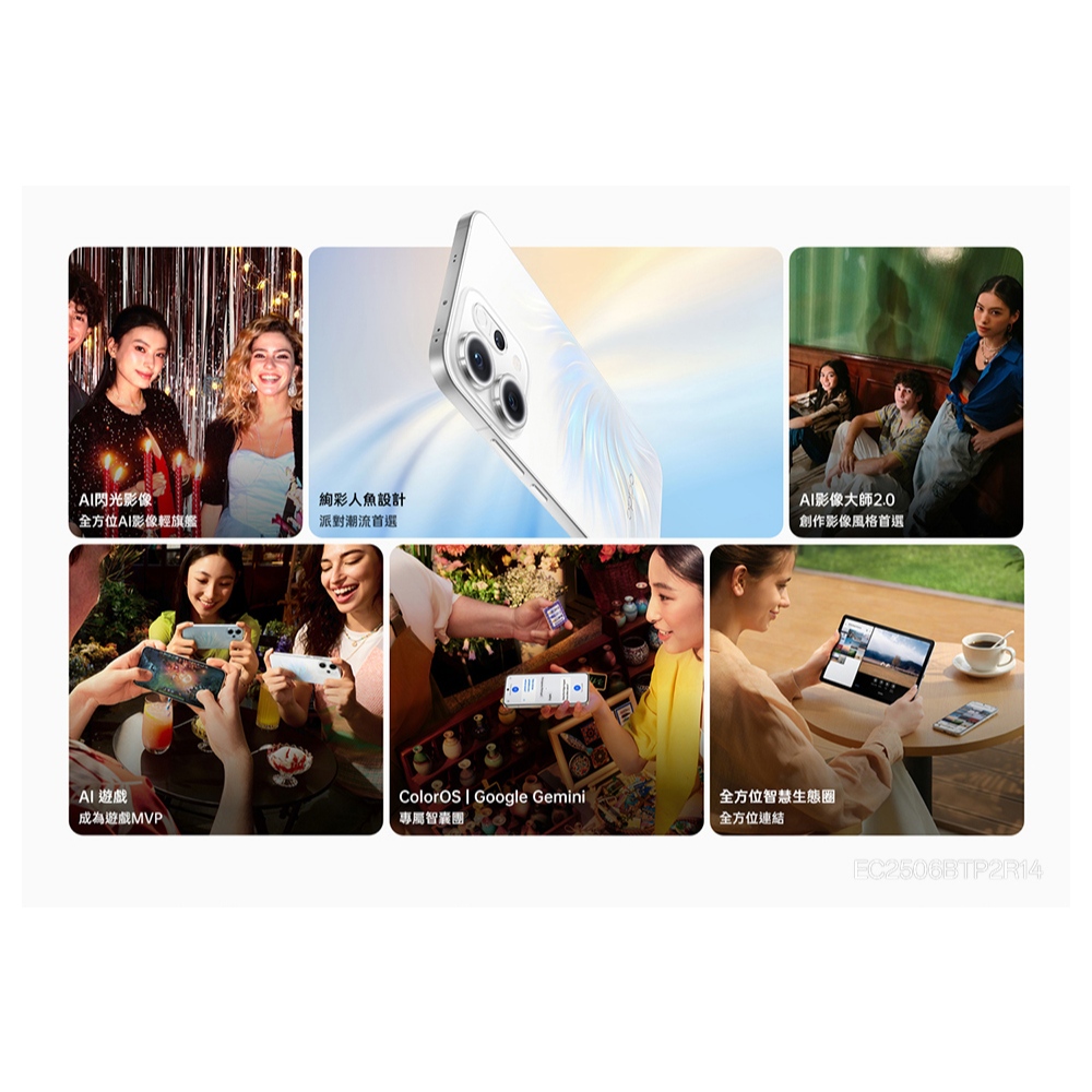 OPPO Reno14 12G+512G【送空壓殼+滿版玻璃保貼】6.59吋 5G智慧手機靜謐綠|絢彩白3C雲購物網