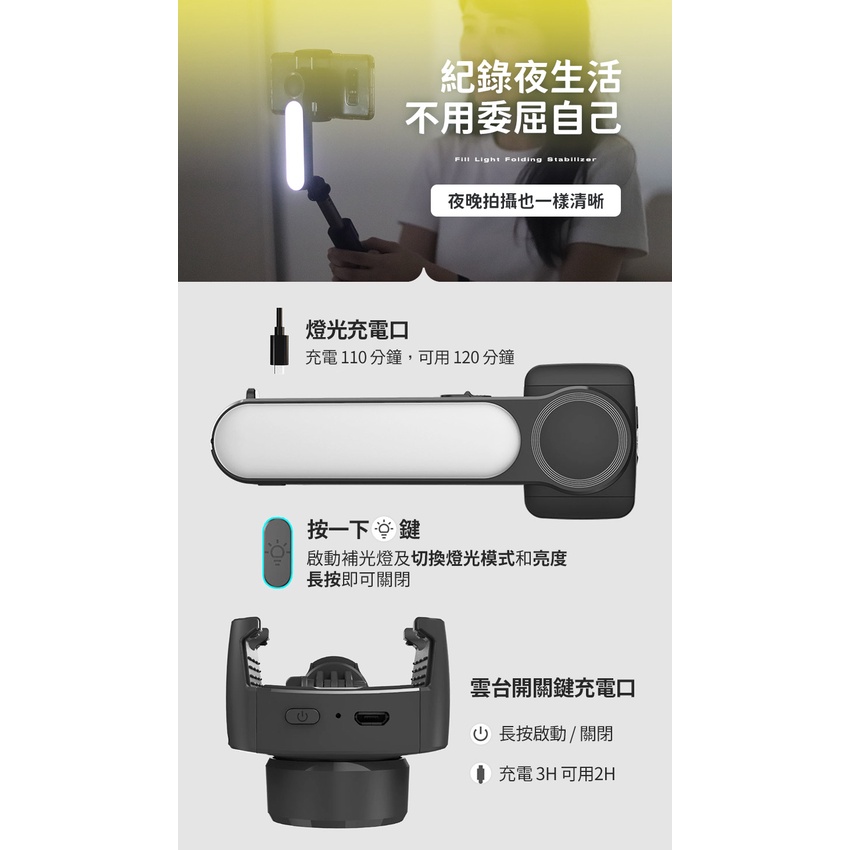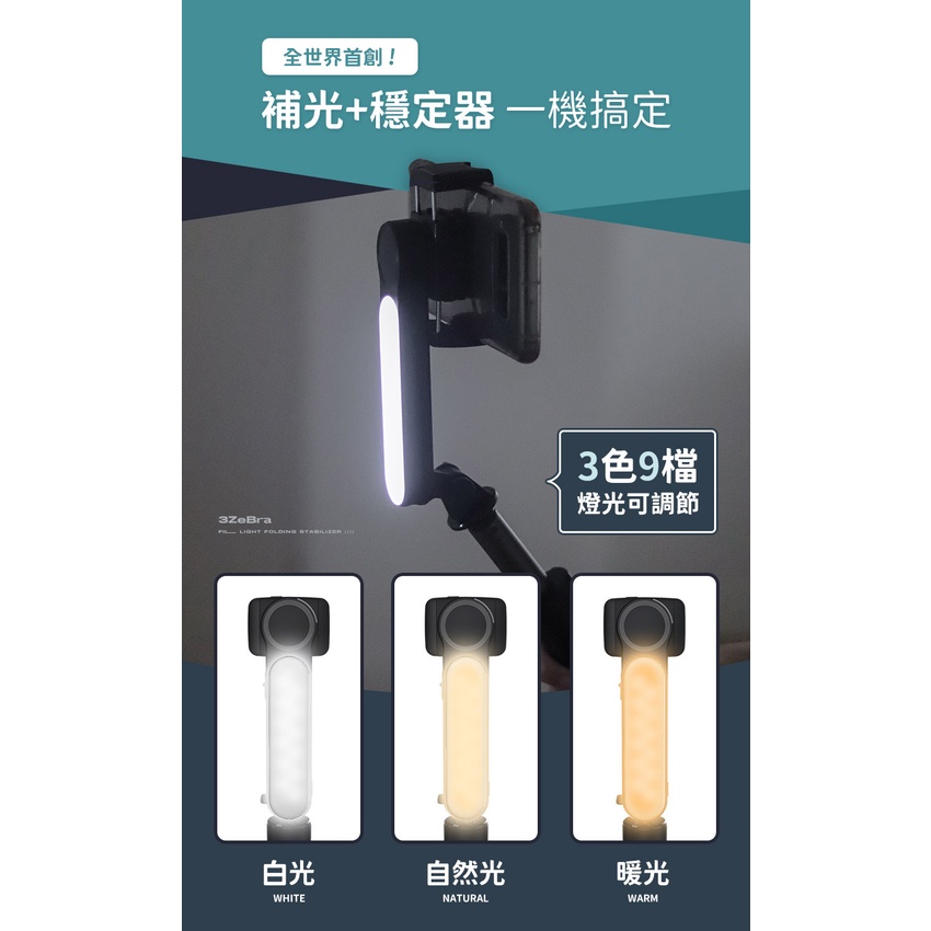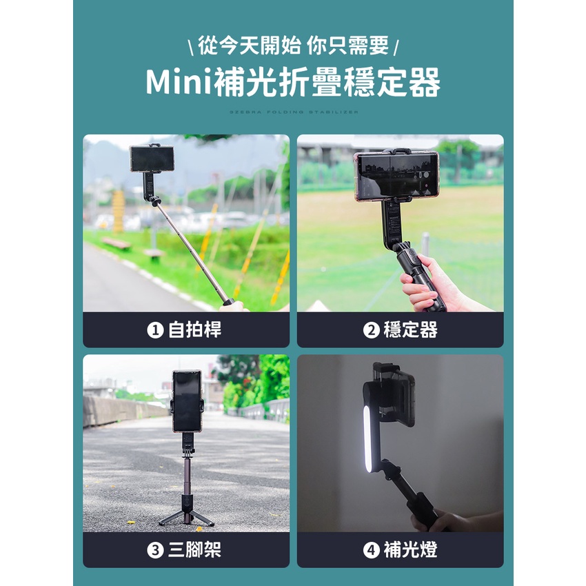 【3ZeBra 三隻斑馬】 MINi補光折疊穩定器|D03-43|單軸穩定器 藍芽自拍棒 無線自拍棒 手機穩定器