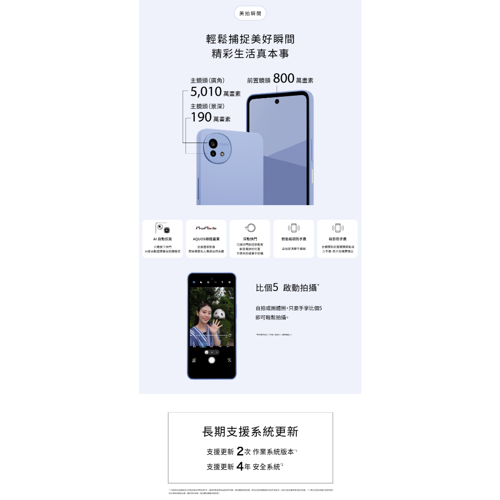 SHARP 夏普 AQUOS wish5 6.6吋 6G/128G【送10好禮】 5G智慧型手機若葉綠 [限時加碼送10好禮]|甜粉紅 [限時加碼送10好禮]|雪花白 [限時加碼送10好禮]|蜜果藍 [限時加碼送10好禮]|霧感黑 [限時加碼送10好禮]A | H 網路商城