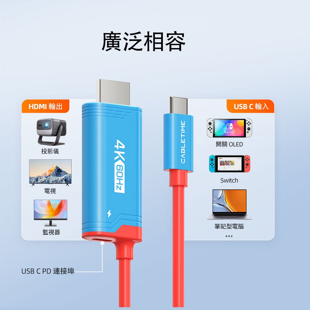 CABLETIME4K60Hz USB C 轉 HDMI 線迷你擴充座支援PD100 供電 適用NSCABLETIME4K60Hz USB C 轉 HDMI 線迷你擴充座支援PD100 供電 適用NSCables, Chargers & Converters~好架本舖~