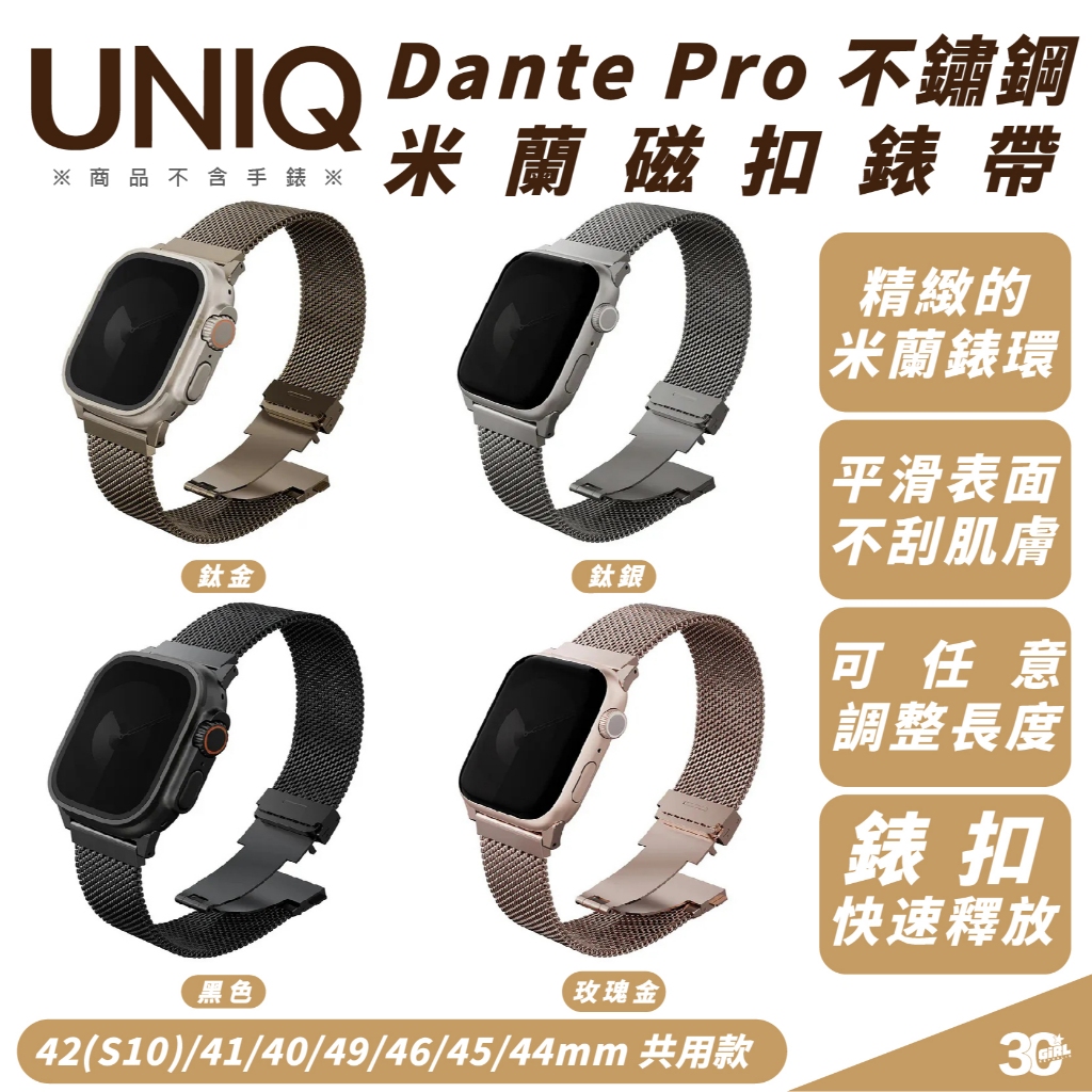 UNIQ Dante Pro 錶帶 不鏽鋼 適 Apple Watch 49 46 45 44 42 41 40 mm鈦金,49/46/45/44mm共用款|鈦金,42(s10)/41/40mm共用款|玫瑰金,49/46/45/44mm共用款|玫瑰金,42(s10)/41/40mm共用款|黑色,49/46/45/44mm共用款|黑色,42(s10)/41/40mm共用款|鈦銀,49/46/45/44mm共用款|鈦銀,42(s10)/41/40mm共用款Wearable Accessories3C Girl