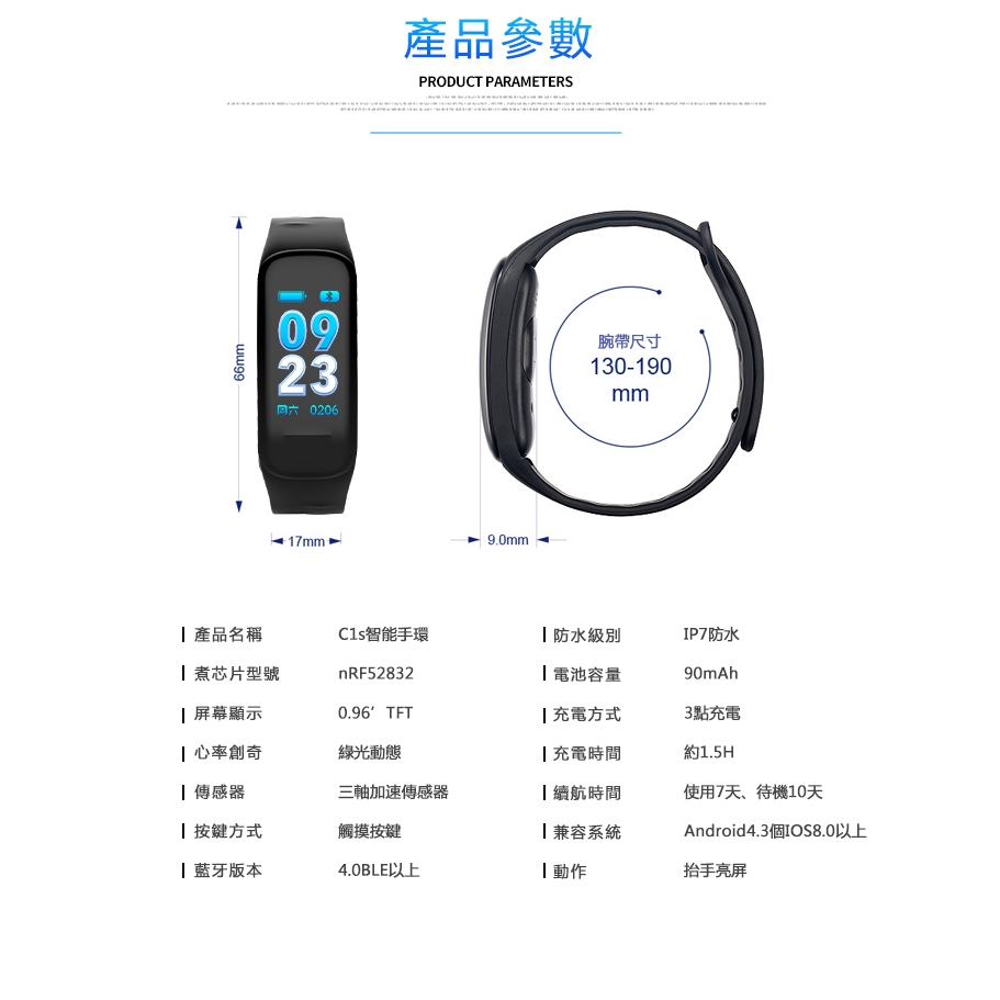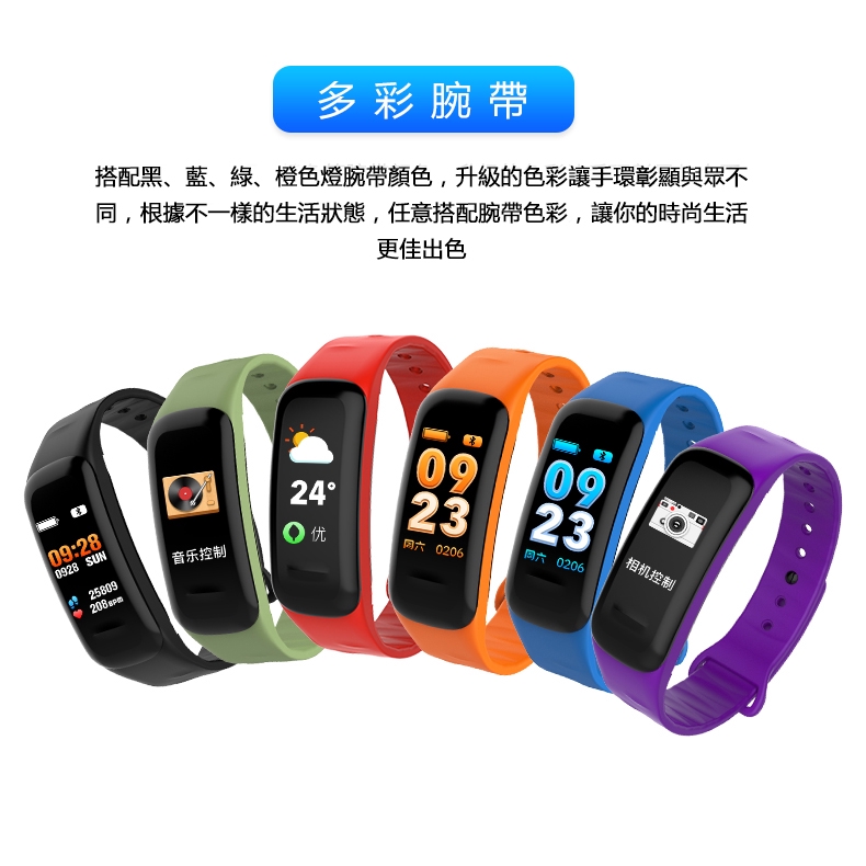 C1S智能手環 動態彩屏 簡訊提醒顯示 兼容多語言 藍芽手環 數據監測 超強防水 拍照音樂控制 睡眠監測 手環