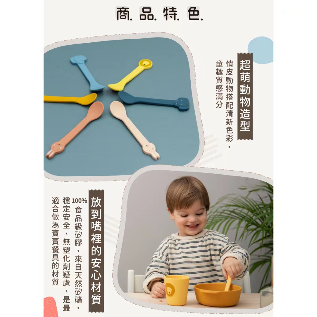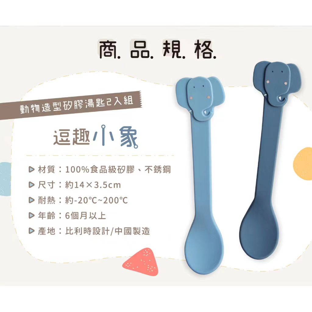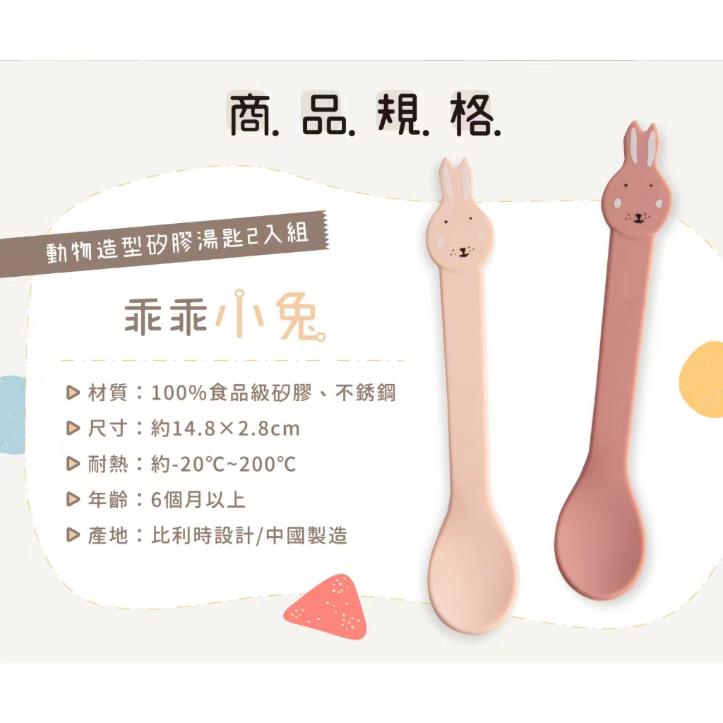 rixie 比利時 動物造型矽膠湯匙2入組 (多款可選) 兒童餐具乖乖小兔|陽光獅子|逗趣小象UtensilsBaby ur Baby