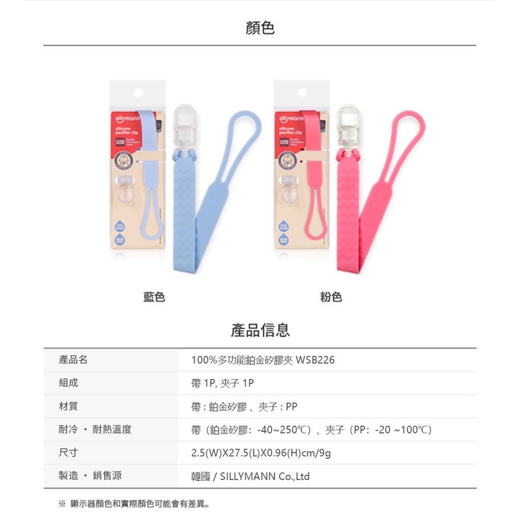 韓國 sillymann 100%多功能鉑金矽膠夾 奶嘴夾 奶嘴鍊(藍/粉)藍|粉UtensilsBaby ur Baby