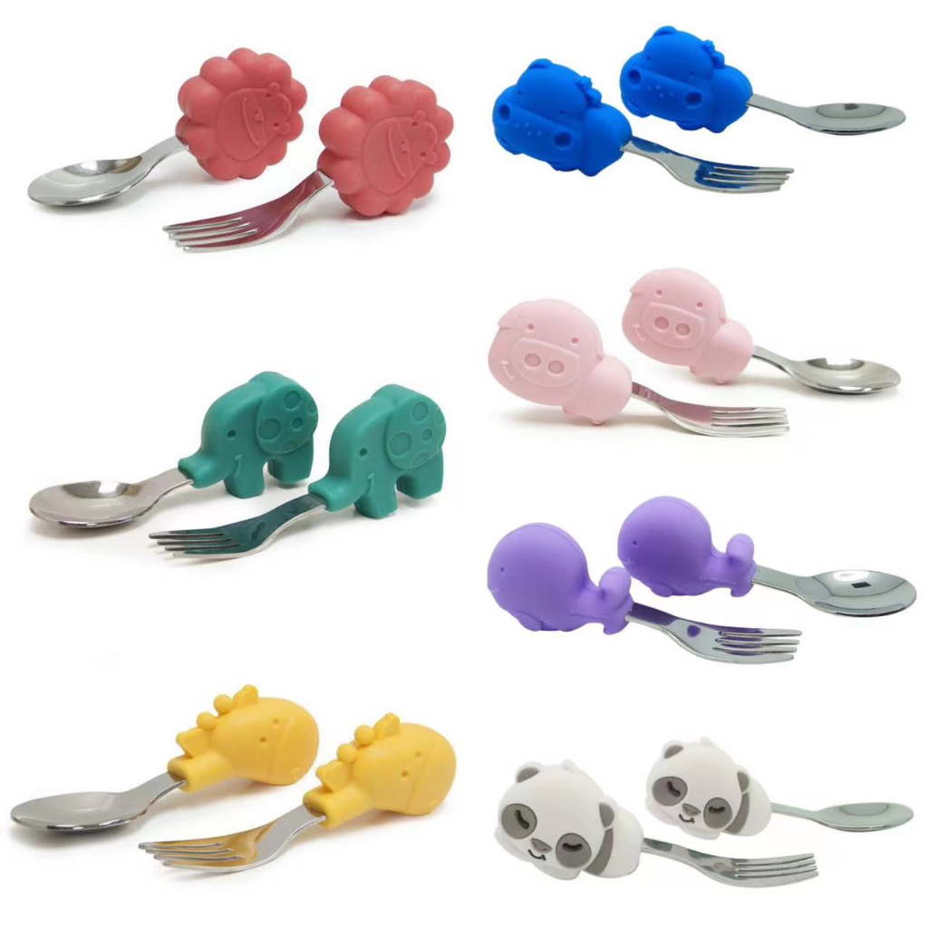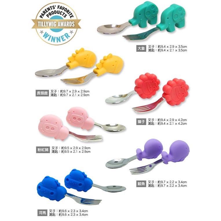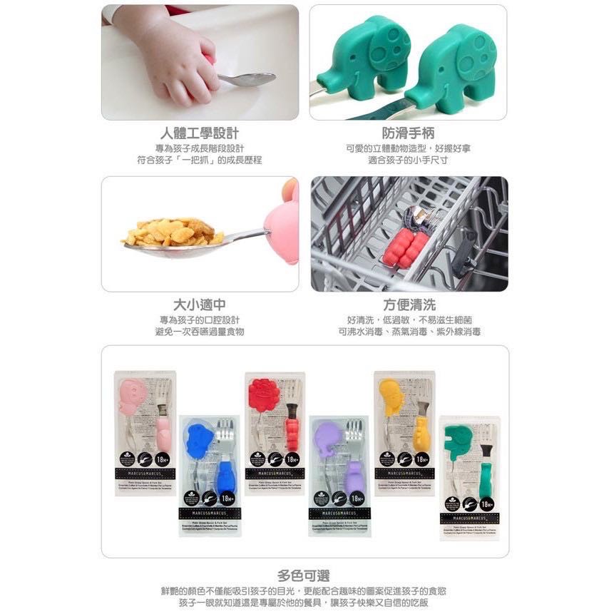 加拿大Marcus & Marcus 動物樂園 寶寶手握訓練 叉匙(7款)獅子紅|長頸鹿黃|鯨魚紫|河馬藍|粉紅豬|大象綠|熊貓UtensilsBaby ur Baby