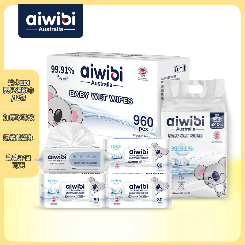 Aiwibi 純水EDI嬰兒濕紙巾 80抽12包入 濕紙巾 純水濕巾 敏感肌適用 無味加厚款 箱購80抽 3包(1袋)加蓋款,超商下單僅限1箱,2箱及以上只能宅配物流|80抽12包(4袋)加蓋款 1箱,超商下單僅限1箱,2箱及以上只能宅配物流WipesAiwibi官方旗艦店