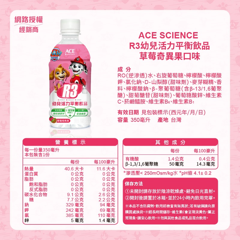 【維維樂】R3幼兒活力平衡飲350mlx24瓶|箱購|蘋果/柚子/草莓奇異果|低滲透壓 電解質 電解水 汪汪隊|官方直營蘋果350mlx24罐|箱購限宅配|草莓奇異果350mlx24罐|箱購限宅配|柚子350mlx24罐|箱購限宅配Baby Vitamins & SupplementsACE Family健康家庭官方旗艦店