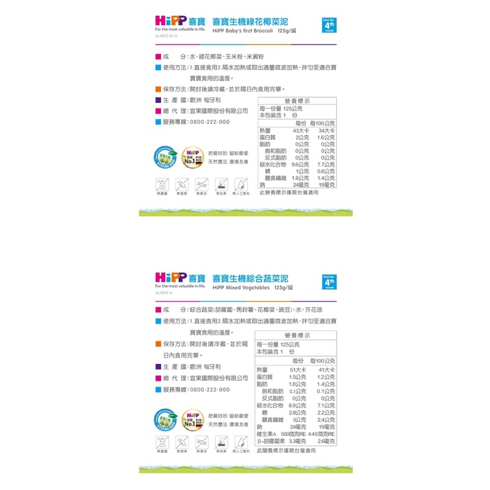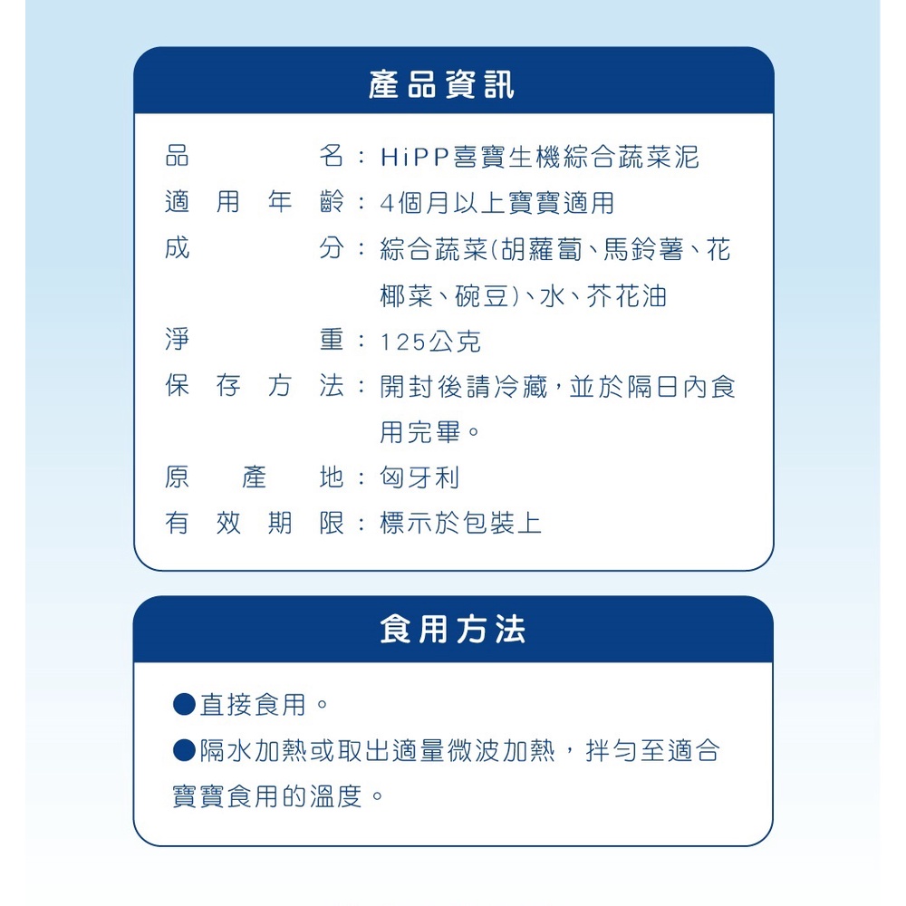 【HiPP】喜寶生機蔬菜泥125g系列2口味任選(綠花椰菜泥/綜合蔬菜泥)【同口味6罐1組,不可混搭】【官方直營】綠花椰菜泥125g*6|綜合蔬菜泥125g*6Baby Porridge, Puree & CerealACE Family健康家庭官方旗艦店