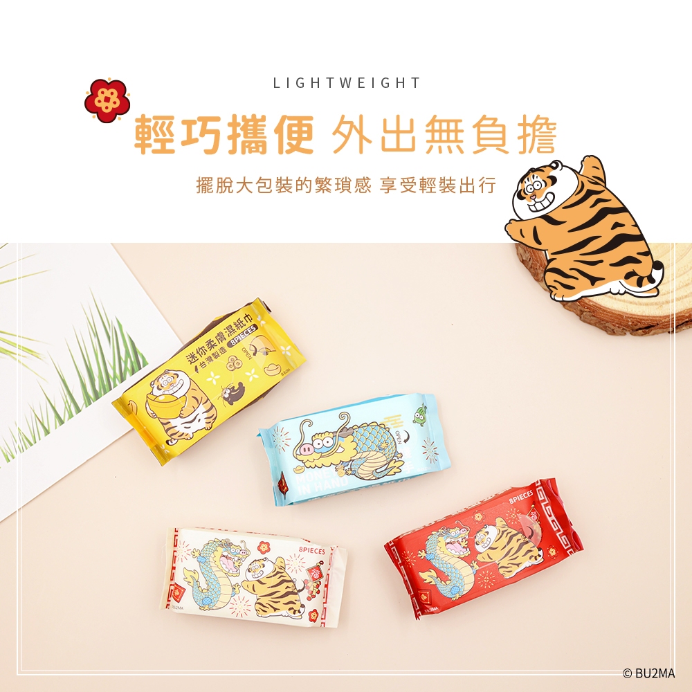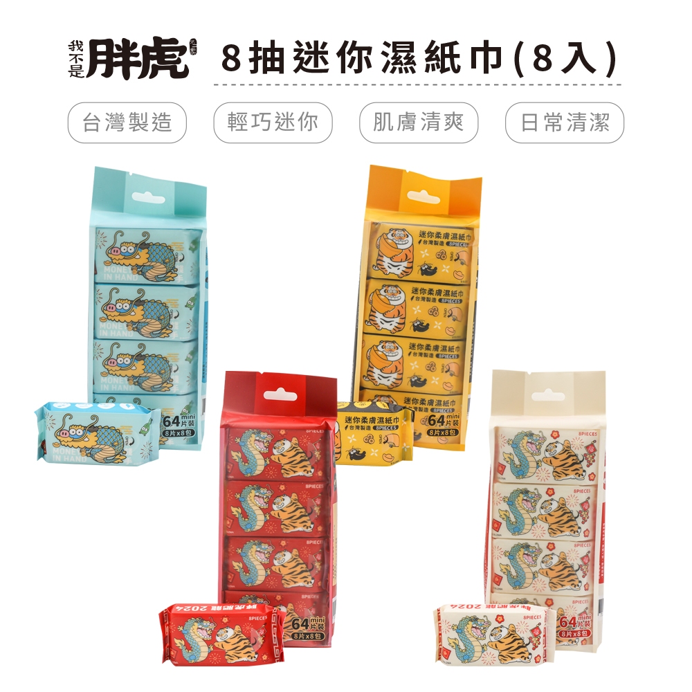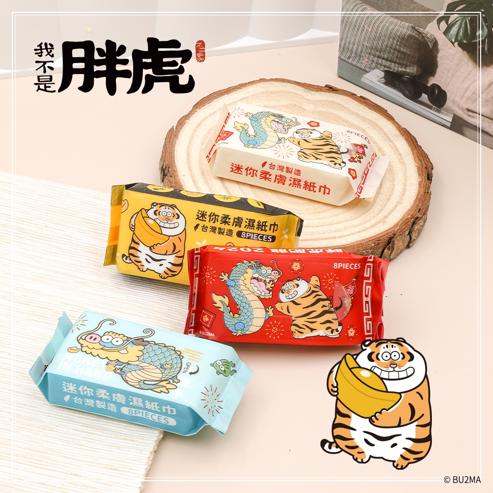 我不是胖虎 迷你柔膚濕紙巾 8抽/8包 純水濕紙巾 RO純水 台灣製造 正版授權【5ip8】FT0002喜氣龍兄虎弟|和氣龍兄虎弟|龍來了|招財進寶Wipes5IP8居家生活館