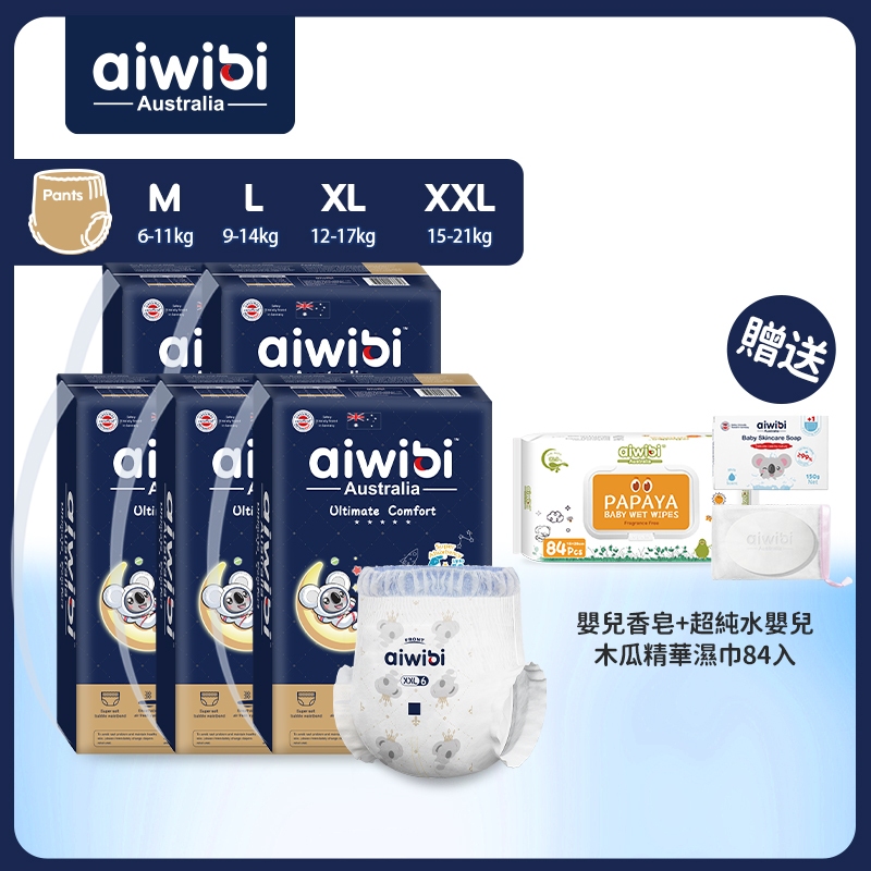 Aiwibi 愛薇彼 夜用甄柔瞬吸褲型紙尿褲 M-XXL(五包裝) 拉拉褲 紙尿褲 柔軟透氣 泡泡腰設計減壓防勒痕XXL 180片((共五包)|M3包+L2包 232片(共五包)|XL3包+XXL2包 192片(共五包)|M 240片(共五包)|L 220片(共五包)|XL 200片(共五包)Disposable DiapersAiwibi官方旗艦店