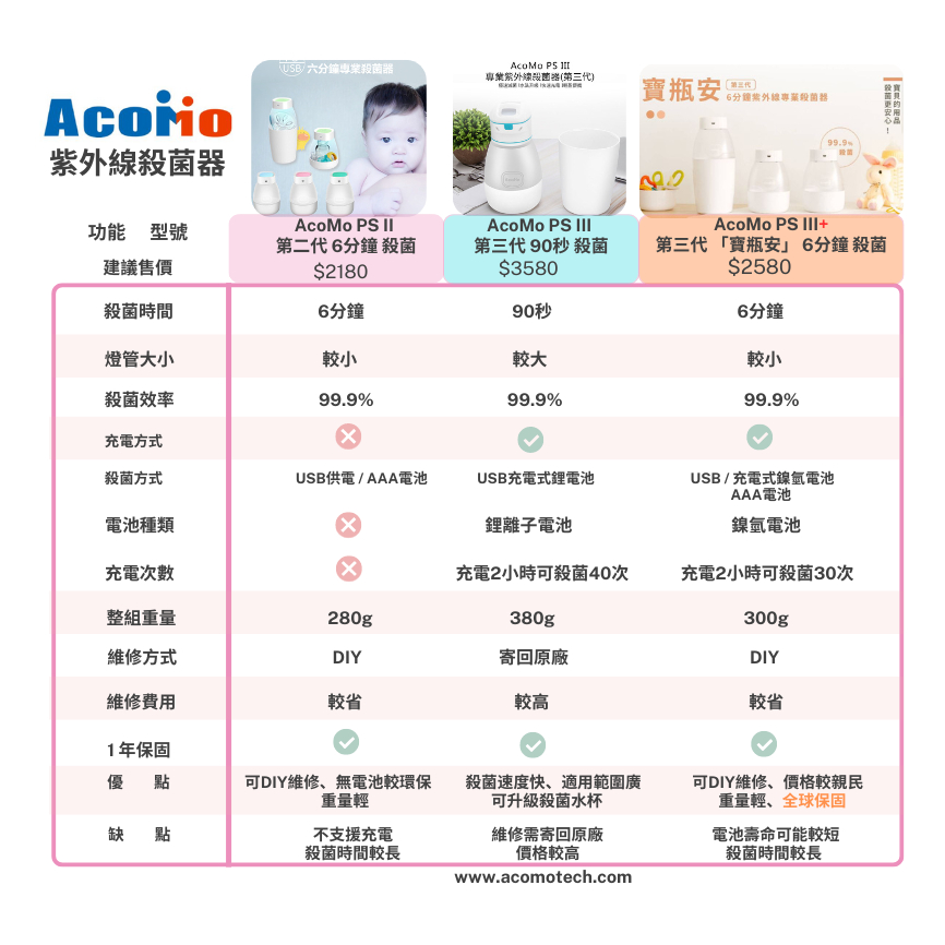 AcoMo PS III+ 寶瓶安|第三代六分鐘紫外線專業殺菌器【USB鎳氫充電】附大小底座(擠乳器/奶瓶/奶嘴)通用寶瓶安單入組-藍【USB鎳氫充電】|寶包平安組|寶瓶安【藍】鎳氫充電+媽媽包|寶包平安組|寶瓶安【粉】鎳氫充電+媽媽包|寶包平安組|寶瓶安【綠】鎳氫充電+媽媽包|寶瓶安單入組-粉【USB鎳氫充電】|寶瓶安單入組-綠【USB鎳氫充電】Bottle-feedingAcoMo官方專賣店