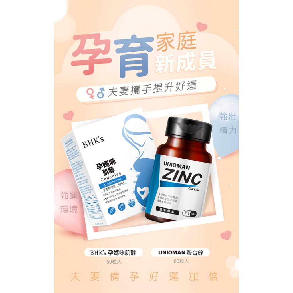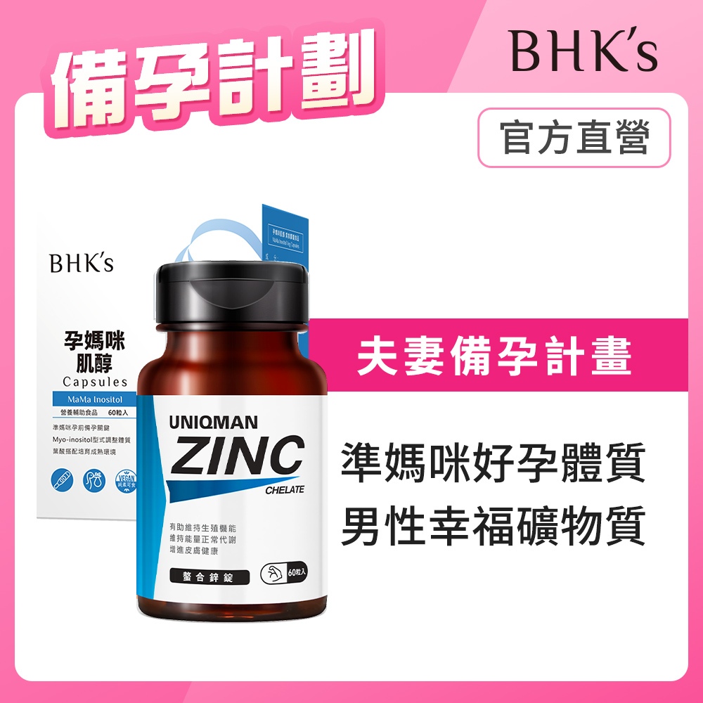 BHK’s 備孕計劃組 孕媽咪肌醇(60粒/盒)+UNIQMAN 螯合鋅錠(60粒/瓶) 官方旗艦店BHK’s 備孕計劃組 孕媽咪肌醇(60粒/盒)+UNIQMAN 螯合鋅錠(60粒/瓶) 官方旗艦店Maternity Vitamins & SupplementBHK’s 官方旗艦店