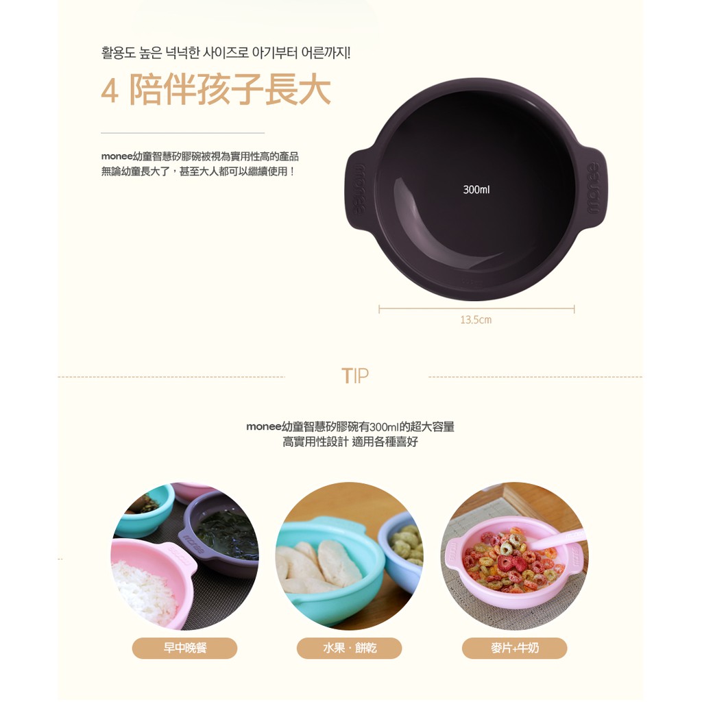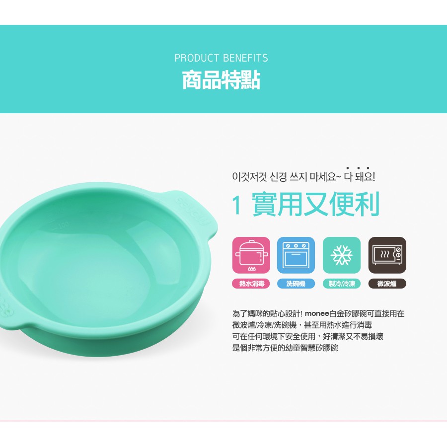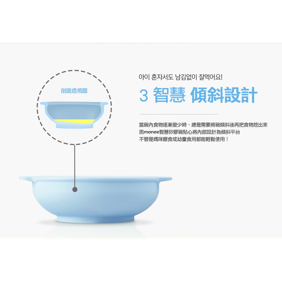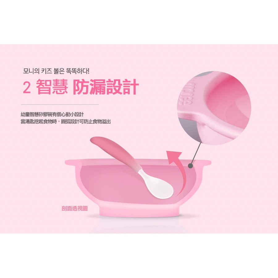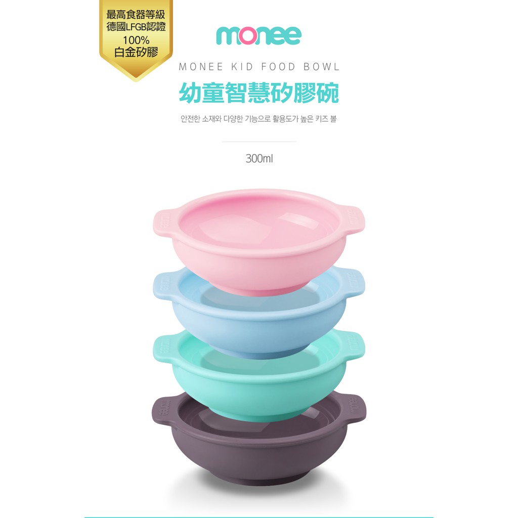 【韓國monee】 100%白金矽膠幼童智慧矽膠碗/4色薄荷綠|巧克力|草莓粉|天空藍Utensils173findneeds