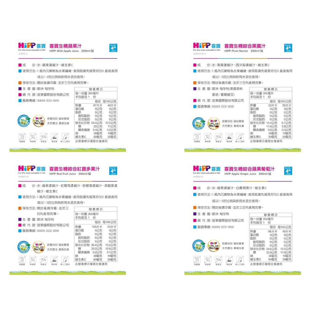 【HiPP】喜寶生機果汁200ml系列4口味任選(黑棗汁/蘋果汁/綜合蘋果葡萄汁/綜合紅寶多)【官方直營】黑棗汁200ml*6|蘋果汁200ml*6|綜合蘋果葡萄汁200ml*6|綜合紅寶多果汁200ml*6Baby SnackACE Family健康家庭官方旗艦店