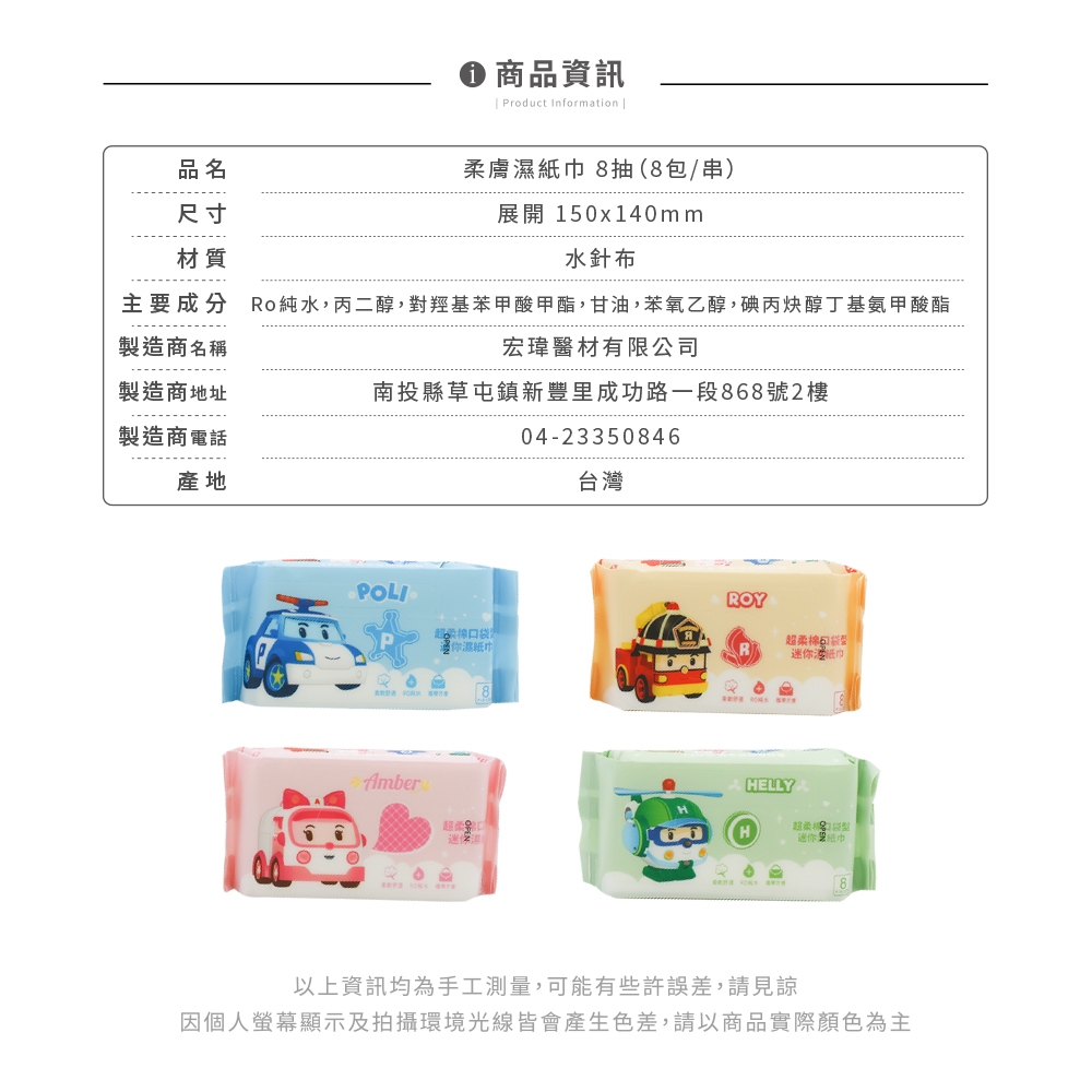 波力 迷你柔膚濕紙巾 8抽/8包 純水濕紙巾 RO純水 台灣製造 正版授權 安寶【5ip8】HW0072波力POLI|安寶AMBER|赫利HELLY|羅伊ROYWipes5IP8居家生活館