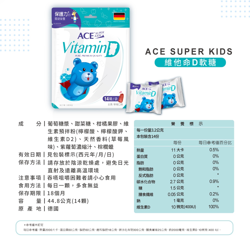 【ACE】SUPER KIDS 機能Q維他命D14包/袋|全素|賞味期2025/11|官方直營維他命D 14包/袋|202511Baby Vitamins & SupplementsACE Family健康家庭官方旗艦店