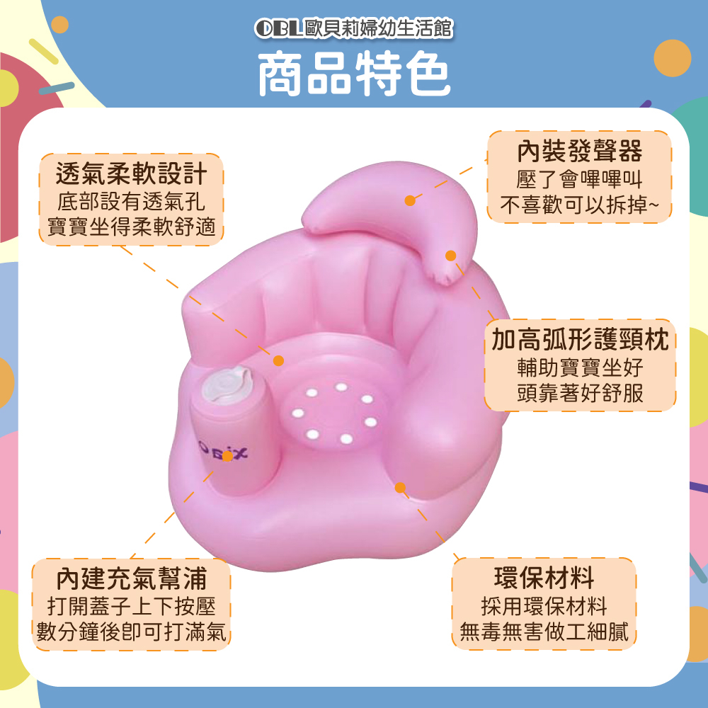 充氣餐椅/沐浴椅 加厚加寬加高款 寶寶充氣椅 充氣幫寶椅 充氣沙發 靠背浴凳座椅墊 洗澡椅《OBL歐貝莉》藍色充氣椅(含修補包一份)|亮粉紅(含修補包一份)Bathing Tubs & Seats【OBL 歐貝莉】歐貝莉婦幼生活館
