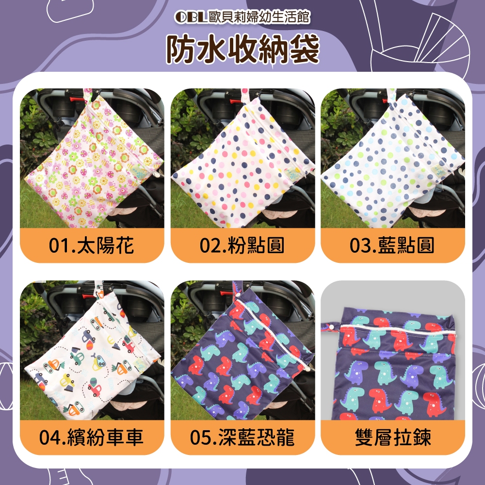 雙層拉鍊 萬用防水收納袋 尿布袋 推車外出掛袋 幼稚園分裝袋 置物袋 推車掛袋 防水掛袋 尿片收納袋《OBL歐貝莉》01.太陽花-雙層防水收納袋|04.繽紛汽車-雙層防水收納袋|02.粉圓點-雙層防水收納袋|03.藍圓點-雙層防水收納袋|05.深藍恐龍-雙層防水收納袋Stroller Accessories【OBL 歐貝莉】歐貝莉婦幼生活館