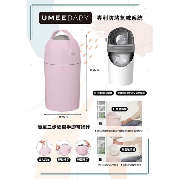 【免運】 Umee除臭尿布桶/尿布處理器-(多款顏色可挑選)淡藍|丁香紫|冰川灰|象牙白|粉色|霧光銅|極光灰|橄欖綠|燕麥奶茶|新款伸縮式-象牙白|新款伸縮式-奶茶|新款伸縮式-橄欖綠|新款伸縮式-冰川灰|新款伸縮式-石墨灰|新款伸縮式-天使粉|新款伸縮式-寧靜藍|新款伸縮式配件-可密封蓋(象牙白)OthersBabycity娃娃城 官方授權店