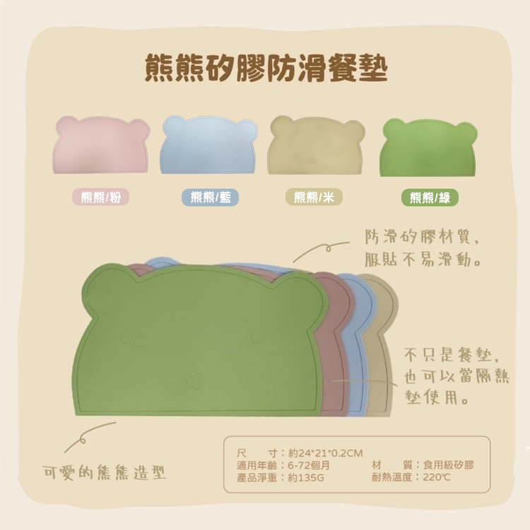 【買一送一 任選請下單數量2】英國《Jolly》兒童矽膠防滑餐墊熊熊/米|熊熊/粉|熊熊/綠|熊熊/藍UtensilsBabycity娃娃城 官方授權店