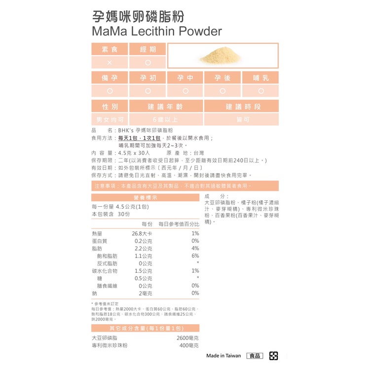 BHK’s 孕媽咪卵磷脂粉 (4.5g/包;30包/盒)2盒組 官方旗艦店BHK’s 孕媽咪卵磷脂粉 (4.5g/包;30包/盒)2盒組 官方旗艦店Maternity Vitamins & SupplementBHK’s 官方旗艦店