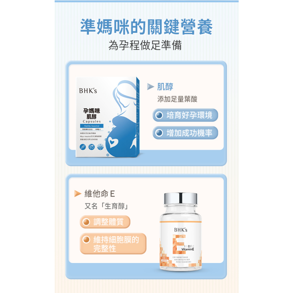 BHK’s 好育助攻組 肌醇(60粒/盒)+維他命E軟膠囊(60粒/瓶) 官方旗艦店BHK’s 好育助攻組 肌醇(60粒/盒)+維他命E軟膠囊(60粒/瓶) 官方旗艦店Maternity Vitamins & SupplementBHK’s 官方旗艦店